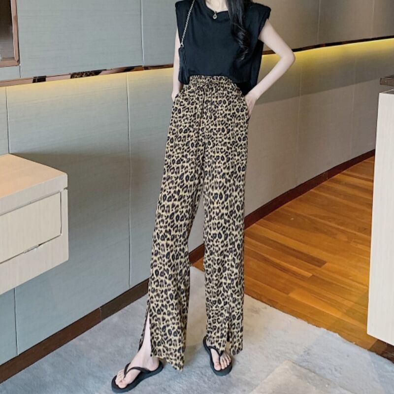 レオパード柄 ハイウエスト ワイドパンツ ボトムス パンツ ズボン ストレートパンツ ロング ロング丈 ストレート ワイド スリット ポケット かわいい 大人可愛い カジュアル 大人 おしゃれ お洒落 かっこいい 大人女子 こなれ感 ルーズ 個性的 クール 主役級 存在感 柄 ヒョウ柄 アニマル柄 春 夏 秋 10代 20代 レディース 通勤 学生 通学 デート お出かけ 女子会 休日 旅行 着回し 普段使い 韓国 韓国系 オルチャン 脚長 ゆったり ゆる サイズ S M L XL レオパード