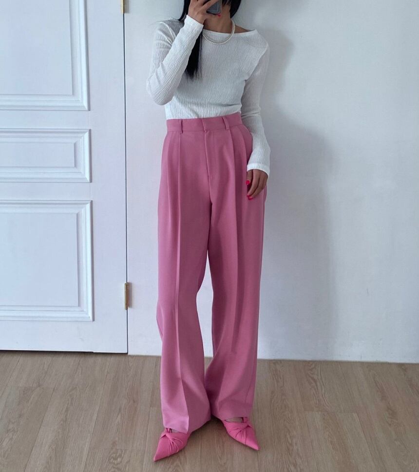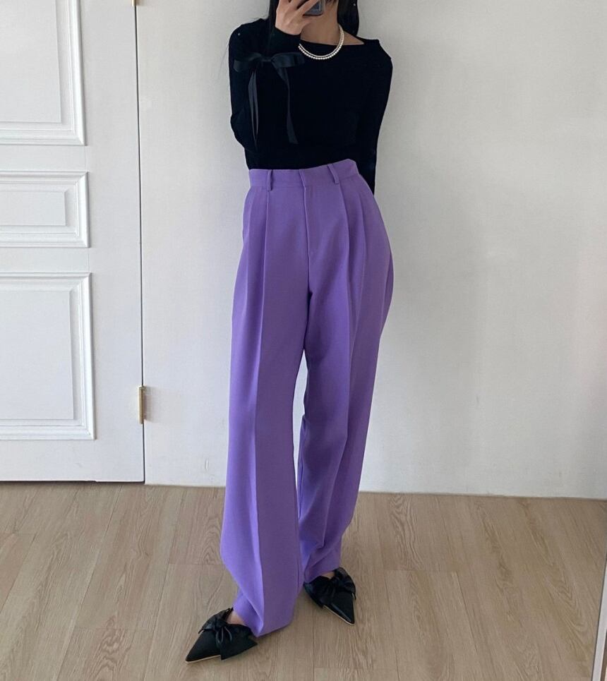 センタープレス ハイウエスト パンツ ボトムス ズボン ワイドパンツ ストレートパンツ カラーパンツ ロング ロング丈 ストレート ワイド ポケット シンプル カジュアル 大人 上品 おしゃれ お洒落 かっこいい 大人女子 こなれ感 マニッシュ クール 無地 春 夏 秋 冬 10代 20代 30代 レディース 通勤 学生 通学 デート お出かけ 女子会 休日 旅行 着回し 普段使い 韓国 韓国系 オルチャン 脚長 ゆったり サイズ S M L 色展開 黒 ブラック 紫 パープル ピンク