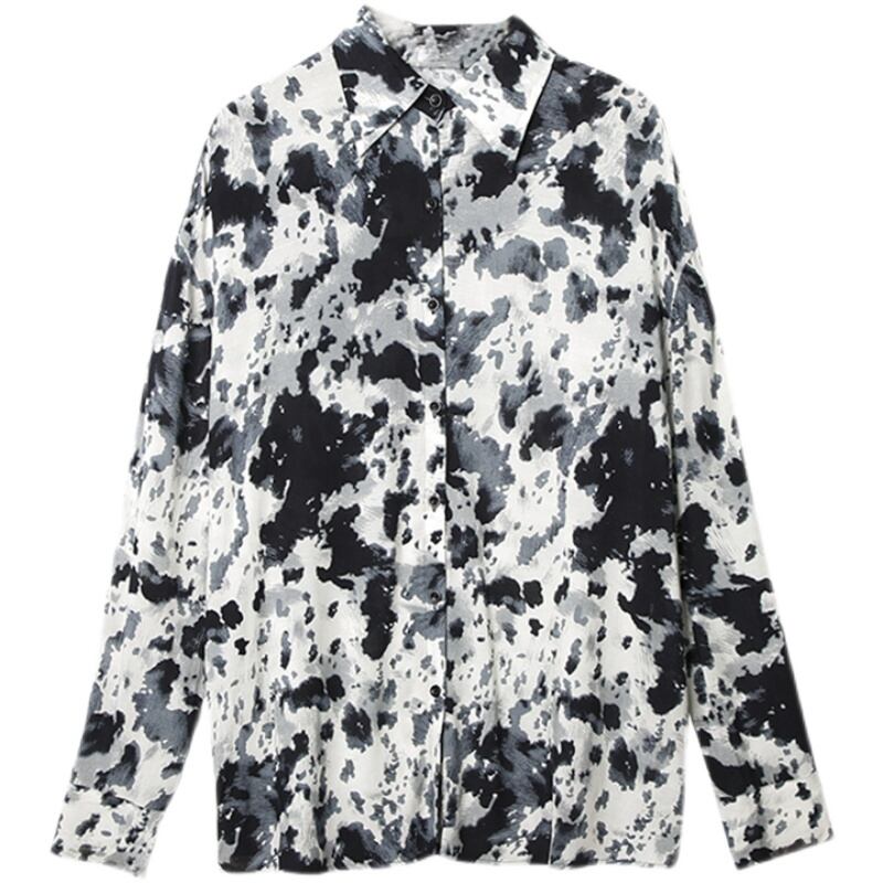 絞り染め 長袖 シャツ トップス ミディアム丈 袖あり 襟付き 前開き カジュアル 大人 おしゃれ お洒落 かっこいい 大人女子 こなれ感 メンズライク ボーイッシュ ルーズ 個性的 クール モード系 柄 ヒョウ柄 レオパード アニマル柄 タイダイ柄 春 秋 10代 20代 レディース 通勤 学生 通学 デート お出かけ 女子会 休日 旅行 着回し 普段使い 重ね着 モノトーン ゆったり ゆる サイズ S M L XL 黒 ブラック