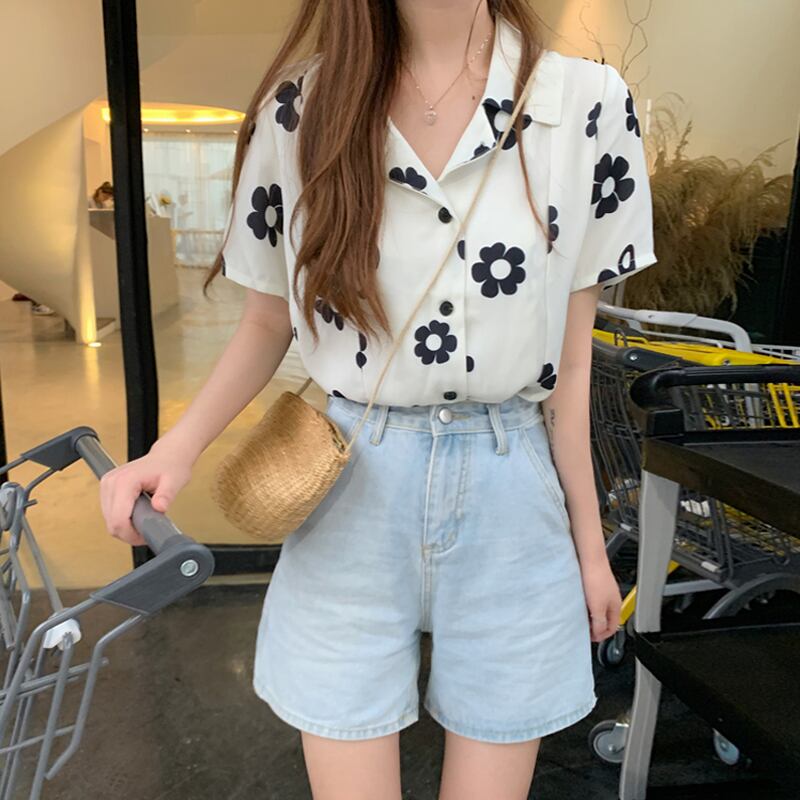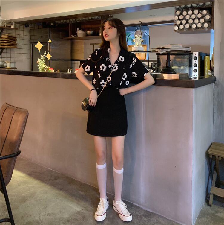 花柄 Vネック 半袖 シャツ ブラウス トップス ミディアム丈 袖あり 襟付き かわいい 大人可愛い シンプル カジュアル 大人 おしゃれ お洒落 大人女子 ラブリー キュート ガーリー 柄 小花柄 フラワー プリント 春 夏 10代 20代 レディース 通勤 学生 通学 デート お出かけ 女子会 休日 旅行 着回し 普段使い 重ね着 韓国 韓国系 オルチャン ゆったり サイズ S M L XL 色展開 白 ホワイト 黒 ブラック