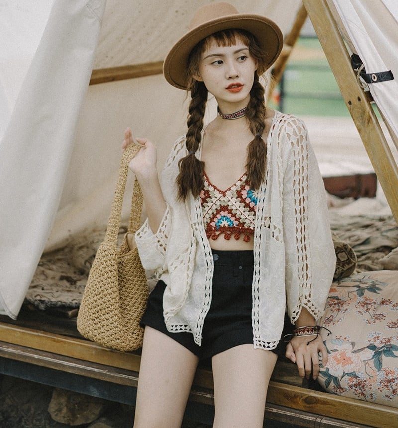 リゾートムードを高めてくれる、透かし編みカーディガン。
