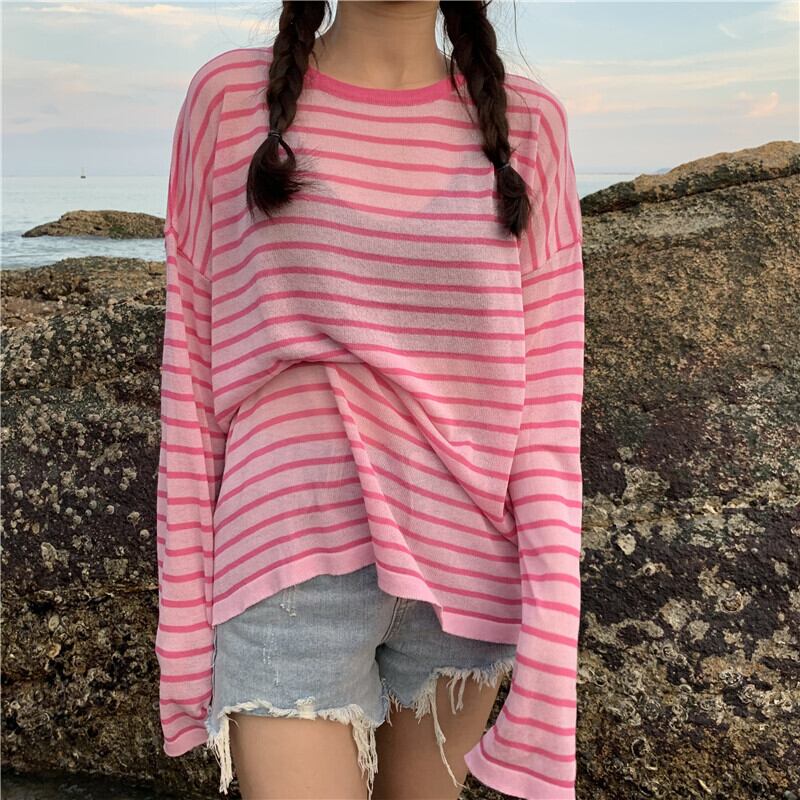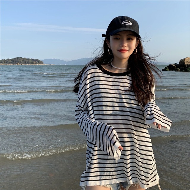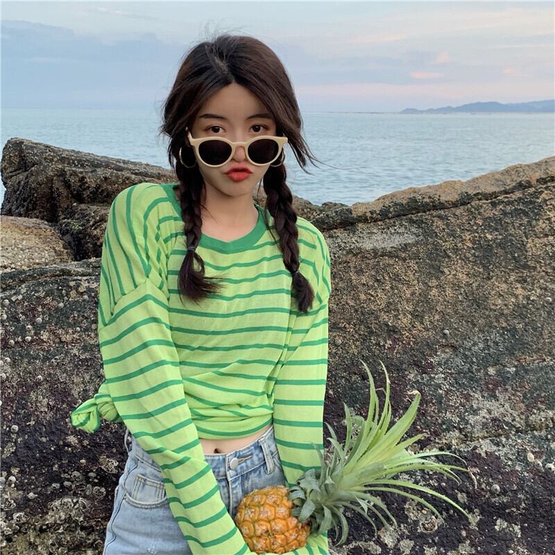 カラバリ ボーダー柄 長袖 ロンT トップス ミディアム丈 袖あり 萌袖 ラウンドネック 襟なし 薄手 かわいい 大人可愛い シンプル カジュアル 大人 おしゃれ お洒落 大人女子 こなれ感 ルーズ 柄 ボーダー シマ 春 夏 秋 10代 20代 レディース 通勤 学生 通学 デート お出かけ 女子会 休日 リゾート 旅行 海 プール 着回し 普段使い 重ね着 韓国 韓国系 オルチャン 体系カバー ゆったり ゆる フリーサイズ 色展開 黒 ブラック 青 ブルー 緑 グリーン ピンク オレンジ