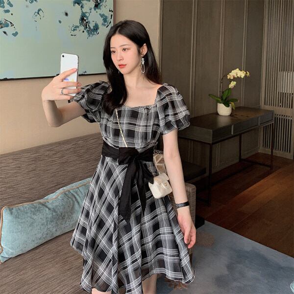 チェック柄 ウエストリボン 半袖 ワンピース フレアワンピース 膝丈 ひざ丈 袖あり 半袖 パフスリーブ スクエアネック 襟なし フレア Aライン 切り替えデザイン リボン バックリボン ハイウエスト かわいい 大人可愛い カジュアル 大人 上品 おしゃれ お洒落 大人女子 ラブリー キュート ガーリー 主役級 柄 格子柄 夏 10代 20代 レディース 通勤 学生 通学 デート お出かけ 女子会 休日 旅行 着回し 普段使い 韓国 韓国系 オルチャン 大きいサイズ S M L XL 2XL 黒 ブラック