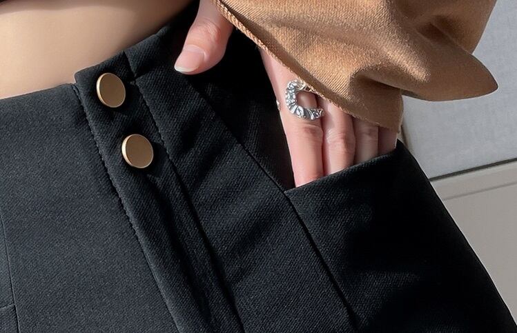 ゴールドボタンがアクセントになった大人上品な1枚。