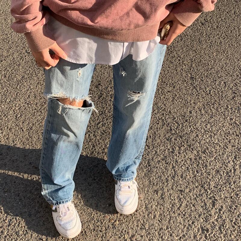ハイウエスト ダメージ デニムパンツ ボトムス パンツ Gパン ズボン ワイドパンツ ロング ロング丈 ストレート ワイド ファスナー ポケット 綿 デニム ブルーデニム かわいい 大人可愛い カジュアル 大人 おしゃれ お洒落 かっこいい 大人女子 こなれ感 メンズライク ボーイッシュ ルーズ 個性的 クール 無地 春 夏 秋 冬 10代 20代 レディース 通勤 学生 通学 デート お出かけ 女子会 休日 旅行 着回し 普段使い 穴あき ゆったり ゆる サイズ S M L 青 ブルー