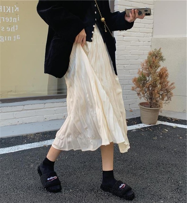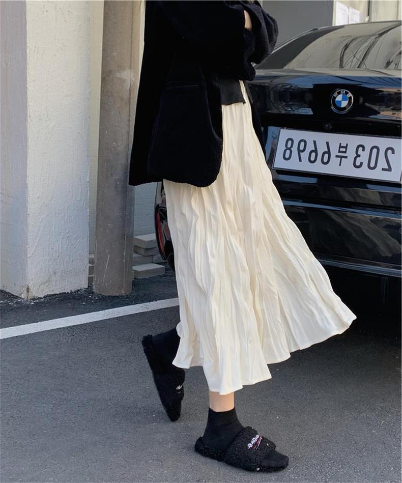 ミモレ丈 プリーツスカート スカート ボトムス ロングスカート フレアスカート 膝下 ミモレ ミモレ丈 フレア Aライン プリーツ ハイウエスト ウエストゴム 伸縮性 かわいい 大人可愛い シンプル カジュアル 大人 おしゃれ お洒落 レトロ 大人女子 無地 春 夏 秋 10代 20代 レディース 通勤 学生 通学 デート お出かけ 女子会 休日 旅行 着回し 普段使い 韓国 韓国系 オルチャン ゆったり フリーサイズ 色展開 白 ホワイト 黒 ブラック