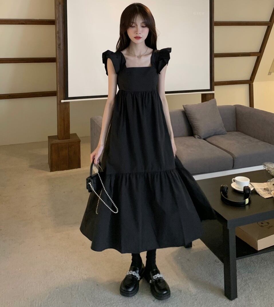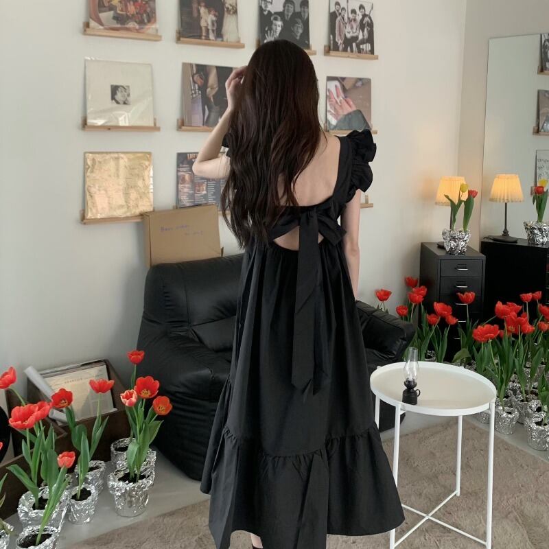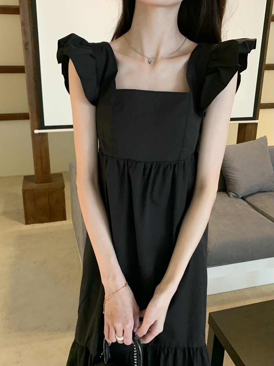 フレンチスリーブ ミモレ丈 ティアードワンピース ワンピース 膝下 ミモレ 半袖 スクエアネック 襟なし フレア Aライン リボン バックリボン バックシャン バックコンシャス フリル ハイウエスト かわいい 大人可愛い シンプル カジュアル 大人 おしゃれ お洒落 大人女子 無地 夏 10代 20代 レディース 通勤 学生 通学 デート お出かけ 女子会 休日 旅行 着回し 普段使い 重ね着 韓国 韓国系 オルチャン ゆったり フリーサイズ 黒 ブラック