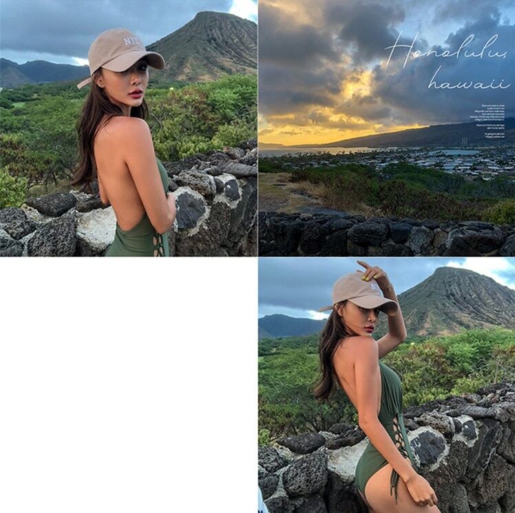 ワンピ型で体系カバーなのに、大胆な背中開きがバックシャンで海やリゾートシーンにもぴったり。