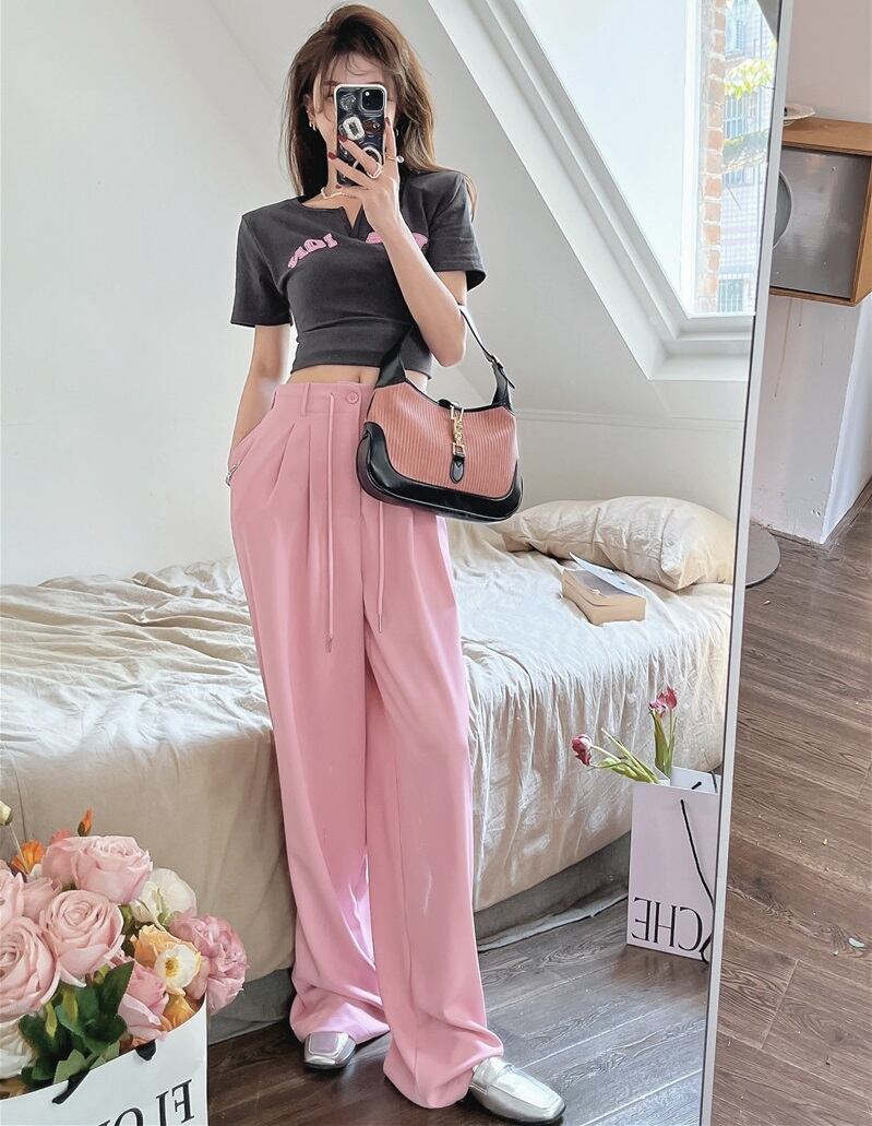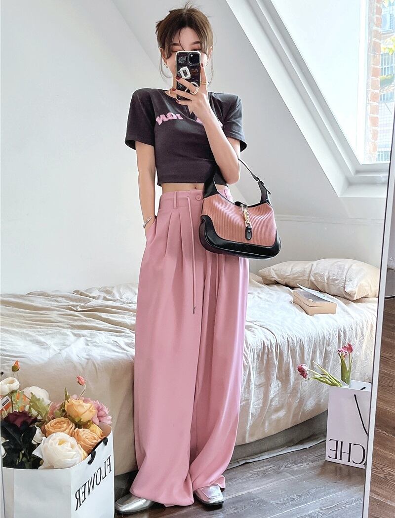 サマーコーデが即完成する、ロゴTシャツとドロスト付きハイウエストパンツの2点セット。