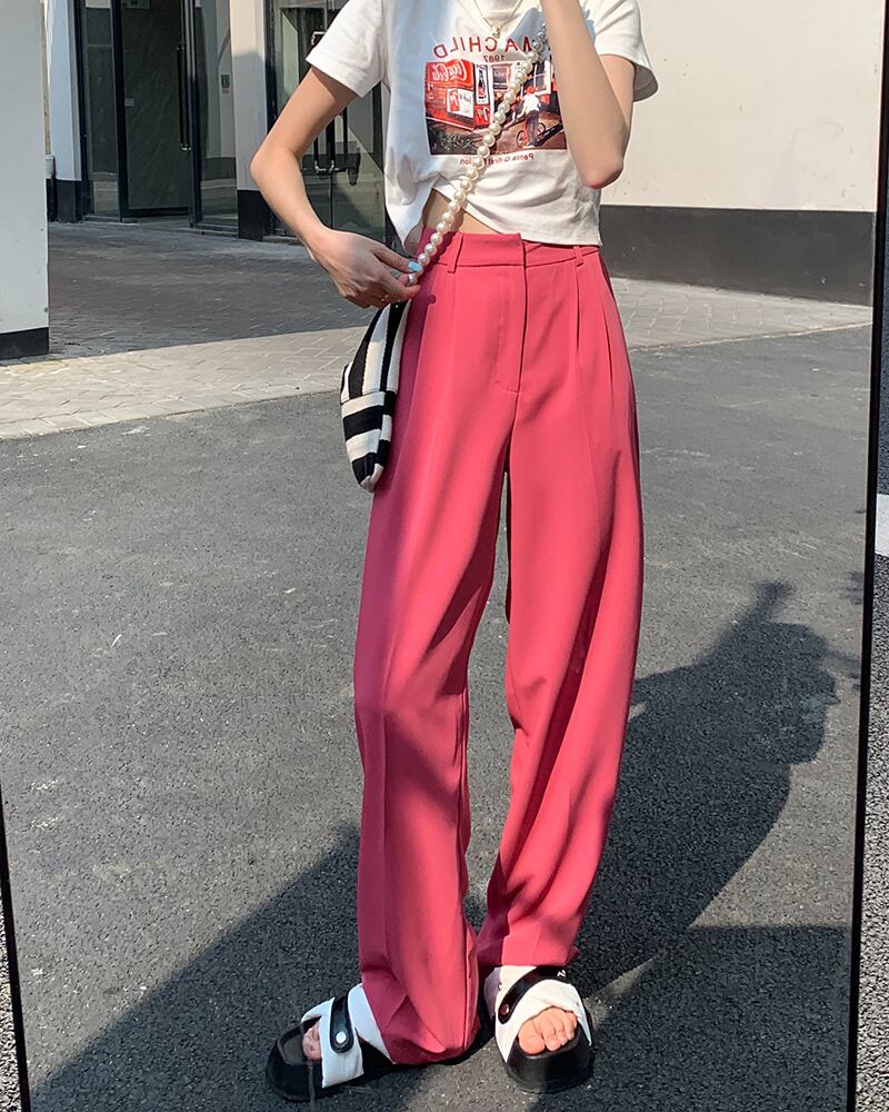 カラバリ ハイウエスト ワイドパンツ ボトムス パンツ ズボン ストレートパンツ カラーパンツ ロング ロング丈 ストレート ワイド ファスナー ポケット 綿 かわいい 大人可愛い シンプル カジュアル 大人 おしゃれ お洒落 大人女子 こなれ感 ルーズ 無地 春 夏 秋 10代 20代 レディース 通勤 学生 通学 デート お出かけ 女子会 旅行 着回し 普段使い 韓国 韓国系 オルチャン 楽ちん 脚長 ゆったり サイズ S M L 色展開 白 ホワイト 黒 ブラック 紫 パープル カーキ ピンク
