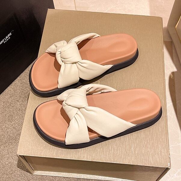 存在感バツグンなリボン結びの厚底サンダル。