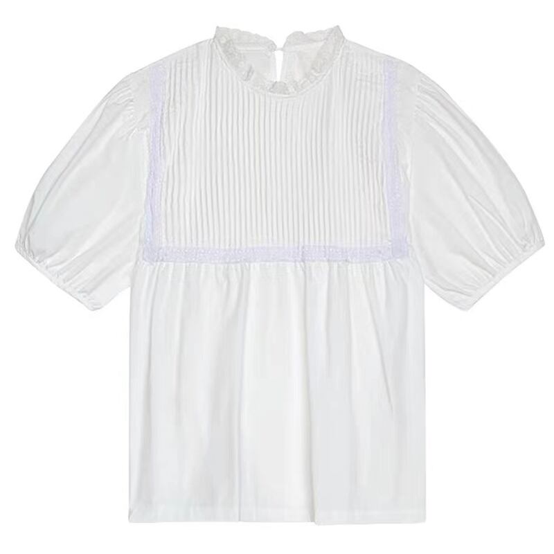 半袖 パフスリーブ ブラウス トップス 白トップス ミディアム丈 袖あり ボリューム袖 襟付き スタンドカラー レース フリル かわいい 大人可愛い シンプル カジュアル 大人 上品 おしゃれ お洒落 大人女子 無地 春 夏 10代 20代 レディース 通勤 学生 通学 デート お出かけ 女子会 休日 旅行 着回し 普段使い 重ね着 韓国 韓国系 オルチャン ゆったり フリーサイズ 色展開 白 ホワイト