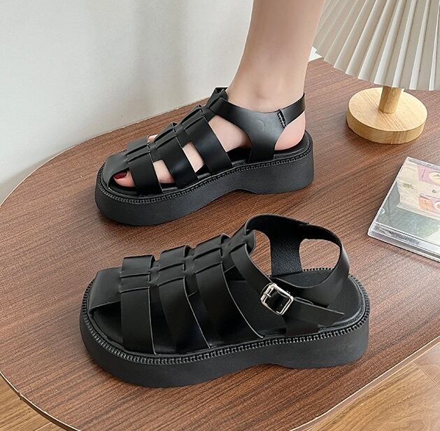 厚底が今っぽいPU素材のコンフォートサンダル。