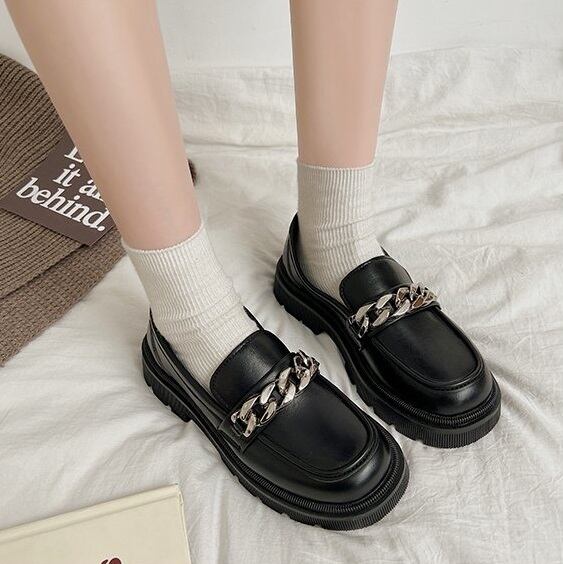 艶消し 艶あり チェーン 厚底 ローファー シューズ 靴 くつ クツ 革靴 4cmヒール チャンキーヒール ラウンドトゥ 歩きやすい 履きやすい PU かわいい 大人可愛い カジュアル 大人 おしゃれ お洒落 レトロ ガーリー 無地 春 夏 秋 冬 10代 20代 レディース 通勤 学生 通学 デート お出かけ 女子会 休日 旅行 デイリー 普段使い 韓国 韓国系 オルチャン コーデ 大きいサイズ 22.5cm 23.0cm 23.5cm 24.0cm 24.5cm 25.0cm 色展開 黒 ブラック