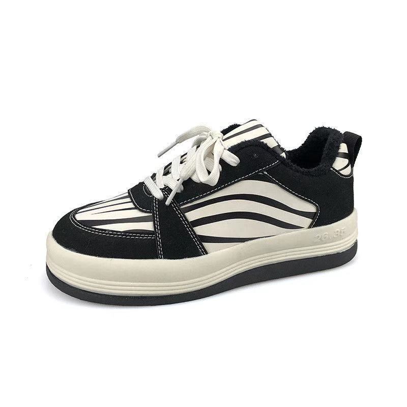 ゼブラ柄 厚底スニーカー シューズ 靴 くつ クツ スニーカー 3-5cmヒール フラット ラウンドトゥ 歩きやすい 履きやすい 走れる 裏ボア 暖かい あったか レースアップ かわいい 大人可愛い カジュアル 大人 おしゃれ お洒落 個性的 存在感 柄 セブラ アニマル柄 春 夏 秋 冬 10代 20代 レディース 通勤 学生 通学 デート お出かけ 女子会 休日 旅行 普段使い 韓国 大きいサイズ 22.5cm 23.0cm 23.5cm 24.0cm 24.5cm 25.0cm 黒 ブラック
