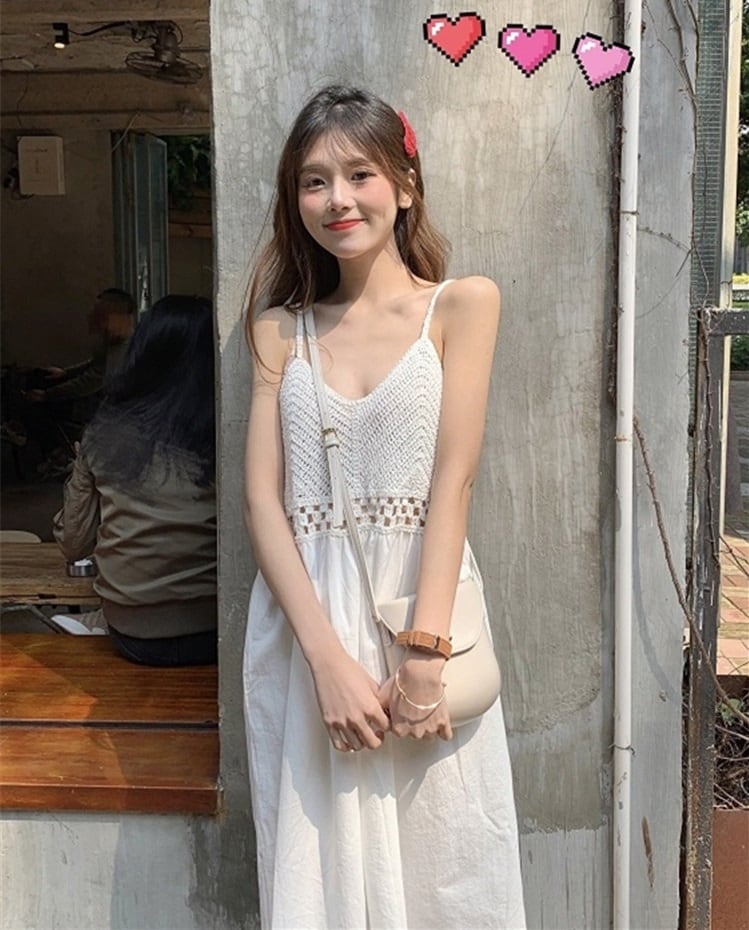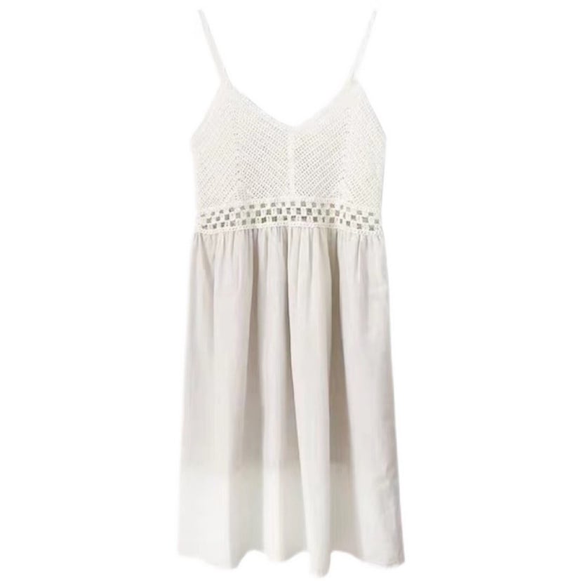 透かし編み キャミソール ワンピース 膝下 ミモレ ミモレ丈 袖なし ノースリーブ Vネック 襟なし 切り替えデザイン ハイウエスト クロシェ 編み込み 透け感 綿 かわいい 大人可愛い シンプル カジュアル 大人 おしゃれ お洒落 レトロ 大人女子 無地 春 夏 10代 20代 レディース 通勤 学生 通学 デート お出かけ 女子会 休日 リゾート 旅行 海 着回し 普段使い 重ね着 韓国 韓国系 オルチャン 楽ちん ゆったり サイズ S M L XL 色展開 白 ホワイト