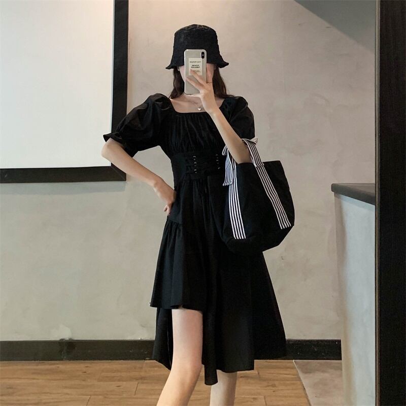 レースアップ 膝丈 アシメ ミニ ワンピース ミニ丈 ひざ丈 膝上 袖あり 半袖 パフスリーブ スクエアネック 襟なし Aライン アシンメトリー 切り替えデザイン ベルト ハイウエスト かわいい 大人可愛い シンプル カジュアル 大人 大人女子 個性的 無地 夏 10代 20代 レディース 通勤 学生 通学 デート お出かけ 女子会 休日 旅行 着回し 普段使い 重ね着 韓国 韓国系 オルチャン 楽ちん サイズ S M L XL 色展開 白 ホワイト 黒 ブラック