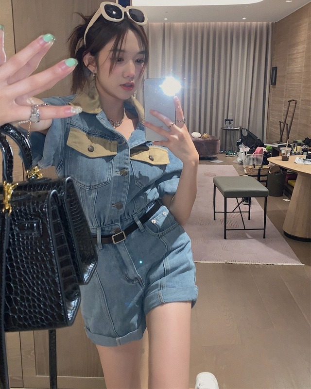 普段使いや夏のお出かけにもかわいいデニムのオールインワン。