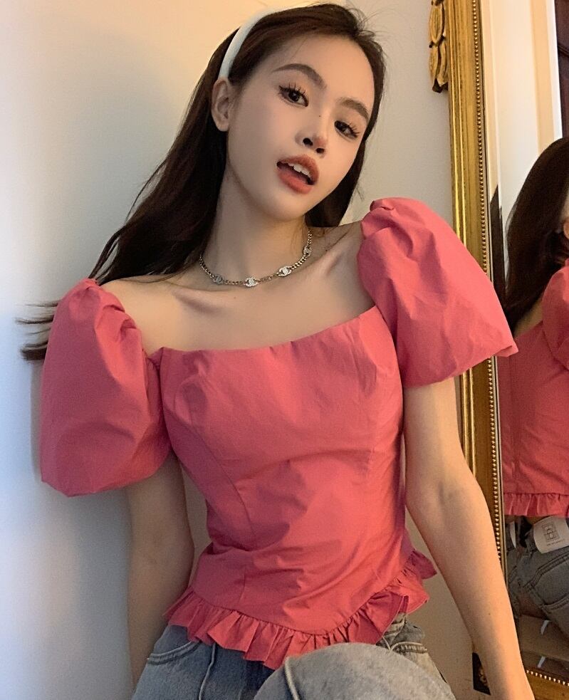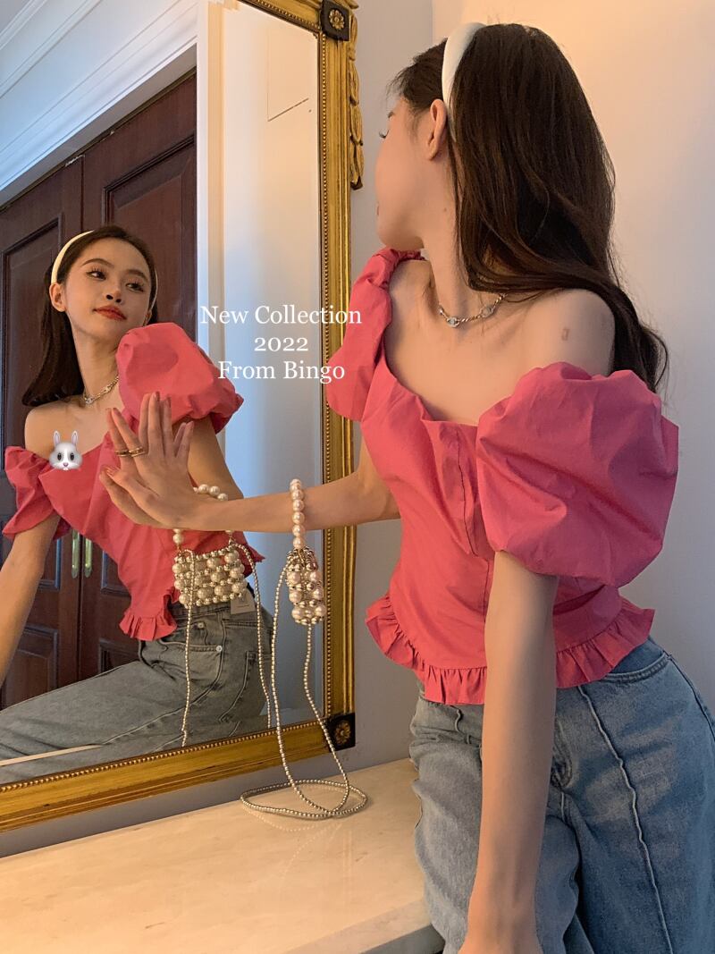 ショート丈 パフスリーブ ブラウス トップス ショート 袖あり 半袖 ボリューム袖 スクエアネック オフショルダー オフショル 襟なし ペプラム フリル 2way かわいい 大人可愛い シンプル カジュアル 大人 おしゃれ お洒落 大人女子 ラブリー キュート ガーリー 主役級 無地 夏 10代 20代 レディース 通勤 学生 通学 デート お出かけ 女子会 休日 旅行 着回し 普段使い 重ね着 韓国 韓国系 オルチャン ゆったり サイズ S M 色展開 ローズレッド