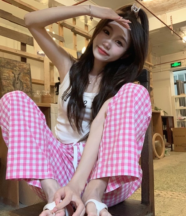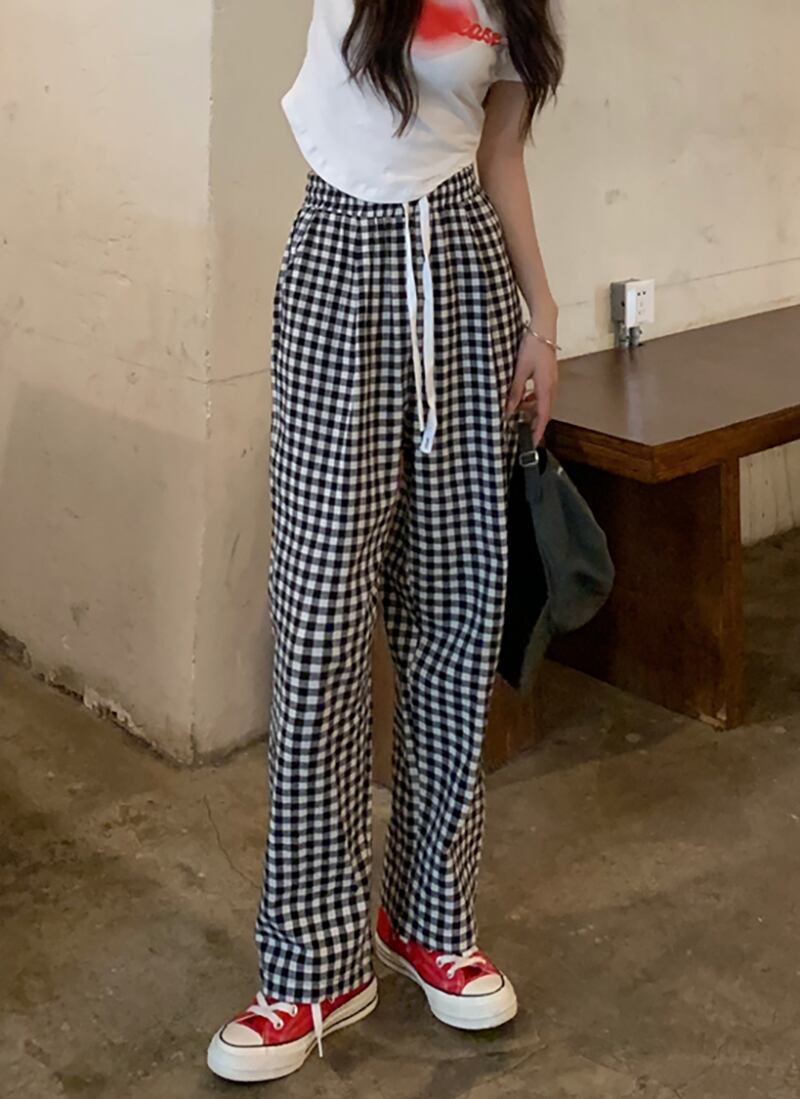 チェック柄 ハイウエスト ワイドパンツ ボトムス パンツ ルームウェア ズボン 部屋着 ストレートパンツ ロング ロング丈 ストレート ワイド ウエストゴム 伸縮性 かわいい 大人可愛い カジュアル 大人 おしゃれ お洒落 大人女子 こなれ感 ラフ キュート ルーズ 抜け感 柄 格子柄 春 夏 秋 10代 20代 レディース 通勤 学生 通学 デート お出かけ 女子会 お泊まり 休日 旅行 着回し 普段使い 韓国 韓国系 楽ちん 脚長 ゆったり ゆる サイズ S M 色展開 黒 ブラック ピンク
