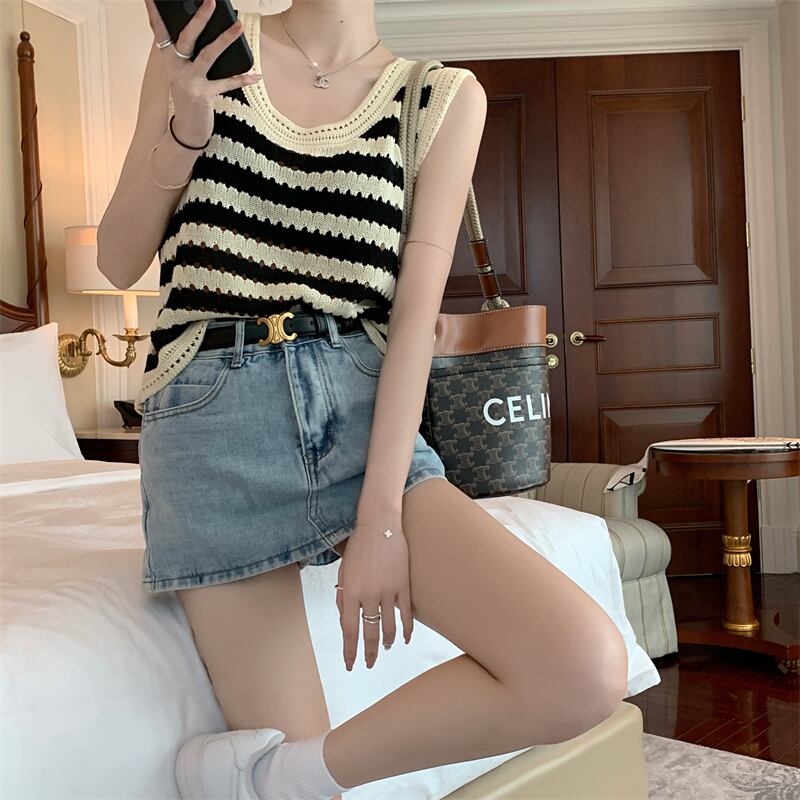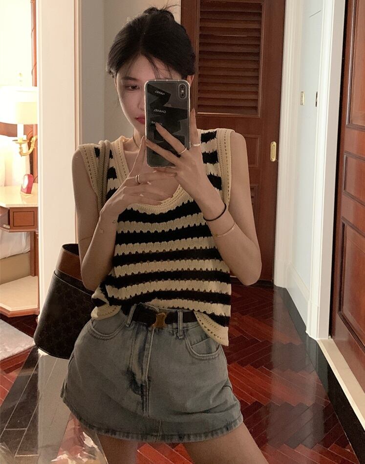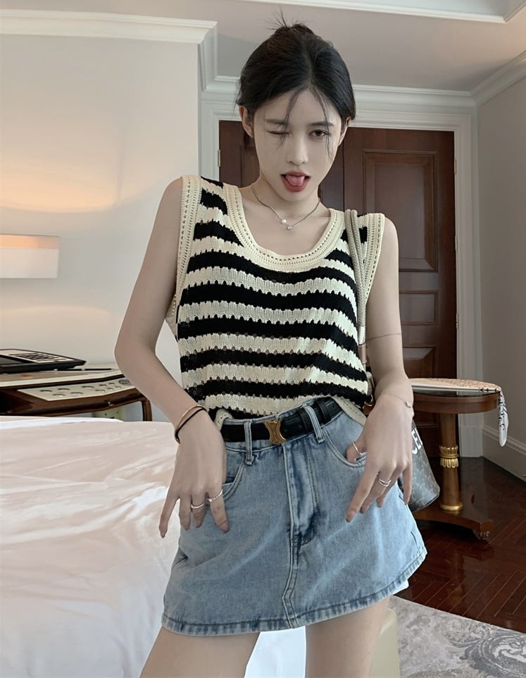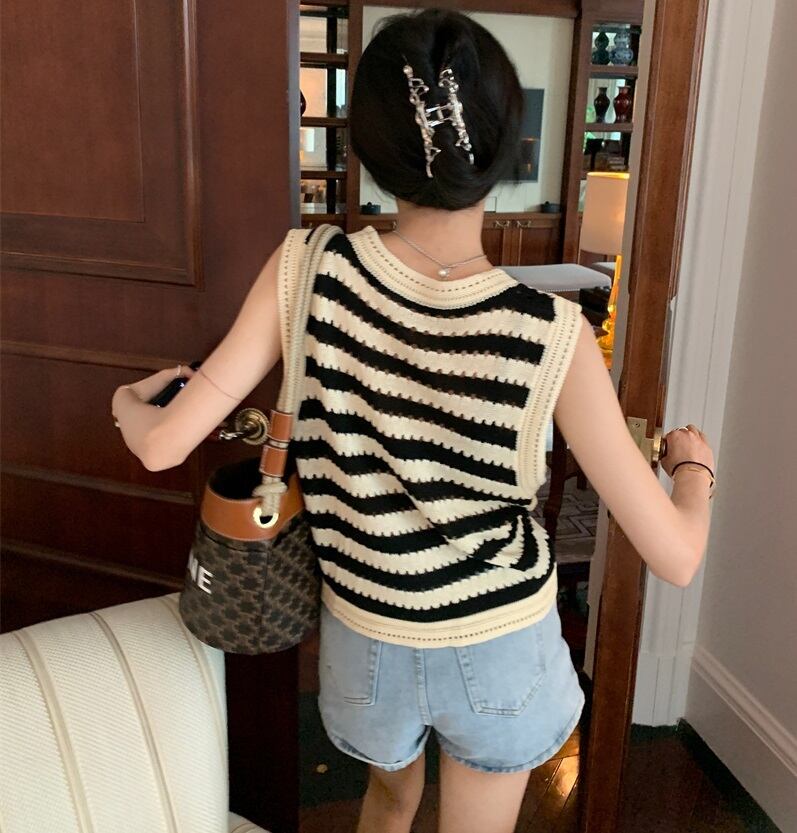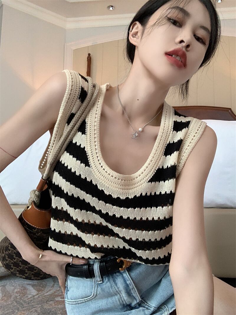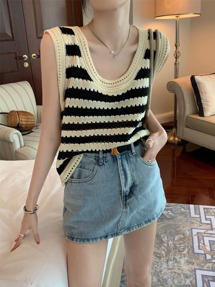ボーダー柄 Uネック ノースリーブ ニットセーター ベスト トップス セーター ミディアム丈 袖なし 襟なし クロシェ 編み込み 透け感 ニット サマーニット 薄手 かわいい 大人可愛い シンプル カジュアル 大人 おしゃれ お洒落 大人女子 こなれ感 ルーズ ボーダー シマ 春 夏 秋 10代 20代 レディース 通勤 学生 通学 デート お出かけ 女子会 休日 旅行 着回し 普段使い 重ね着 韓国 韓国系 オルチャン ゆったり ゆる フリーサイズ 色展開 ボーダー柄
