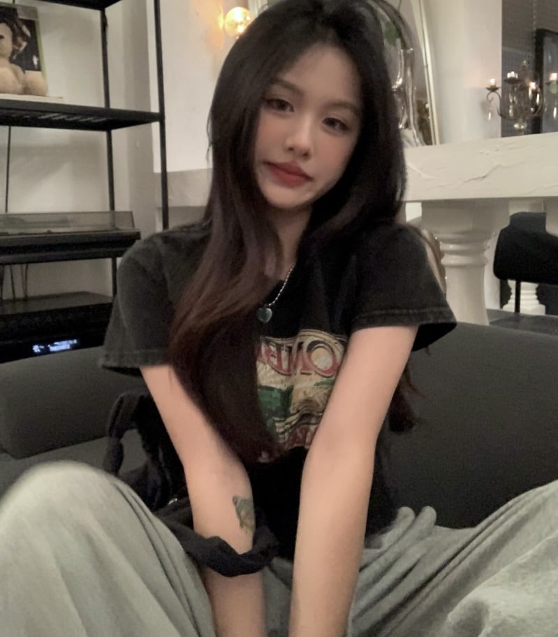ハイウエストボトムに合わせて、今っぽかわいいへそ出しコーデに。