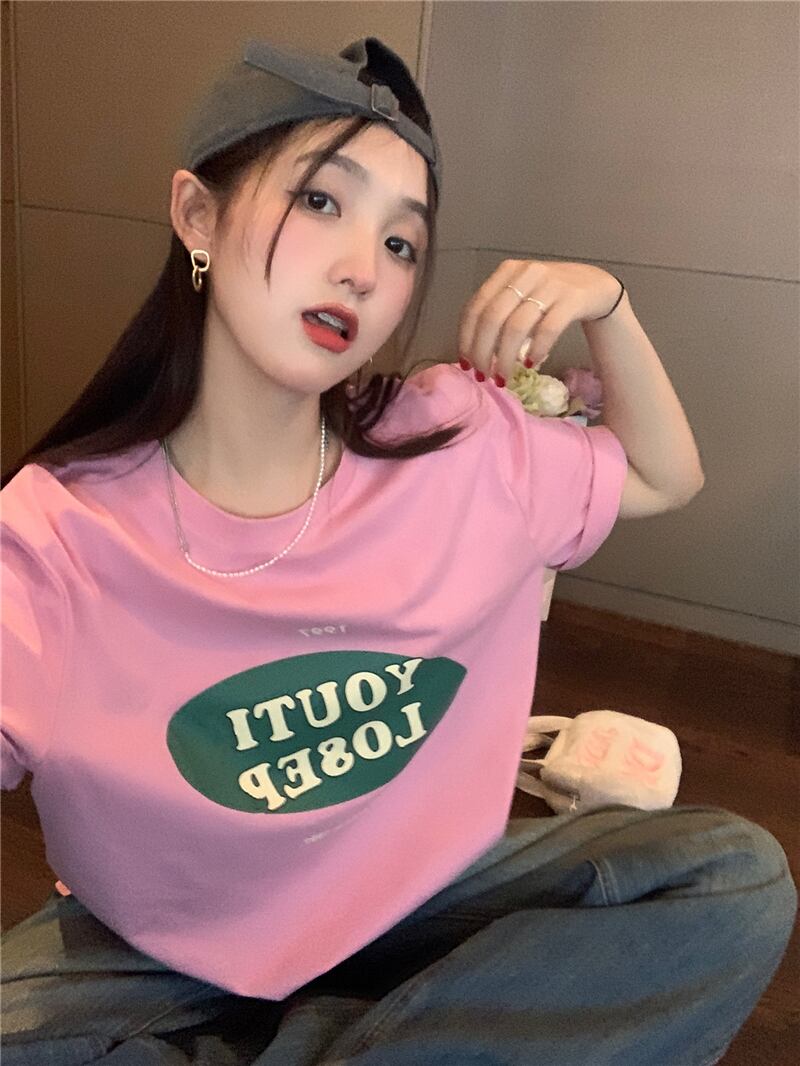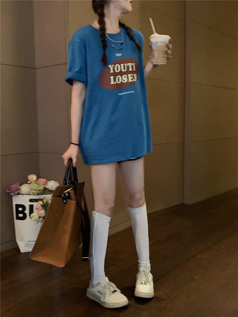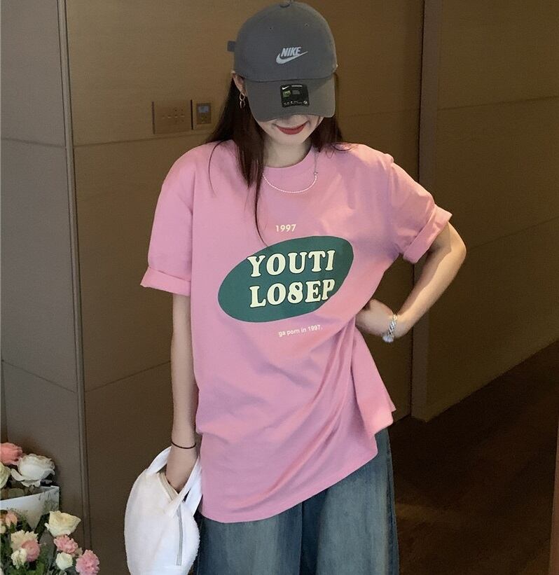 カラバリ オーバーサイズ ロゴ入り 半袖 Tシャツ トップス ミディアム丈 袖あり ラウンドネック 襟なし かわいい 大人可愛い カジュアル 大人 おしゃれ お洒落 大人女子 こなれ感 柄 プリント ロゴ 夏 10代 20代 レディース 通勤 学生 通学 デート お出かけ 女子会 休日 旅行 着回し 普段使い 重ね着 韓国 韓国系 オルチャン ゆったり ゆる 大きめ フリーサイズ 色展開 白 ホワイト 青 ブルー 黄色 イエロー ピンク