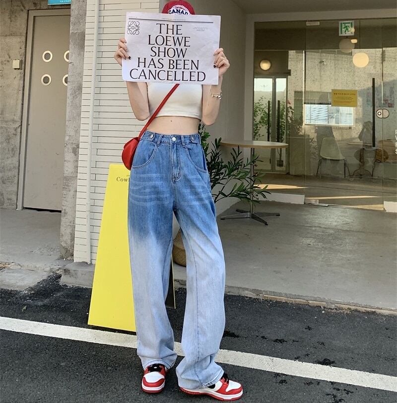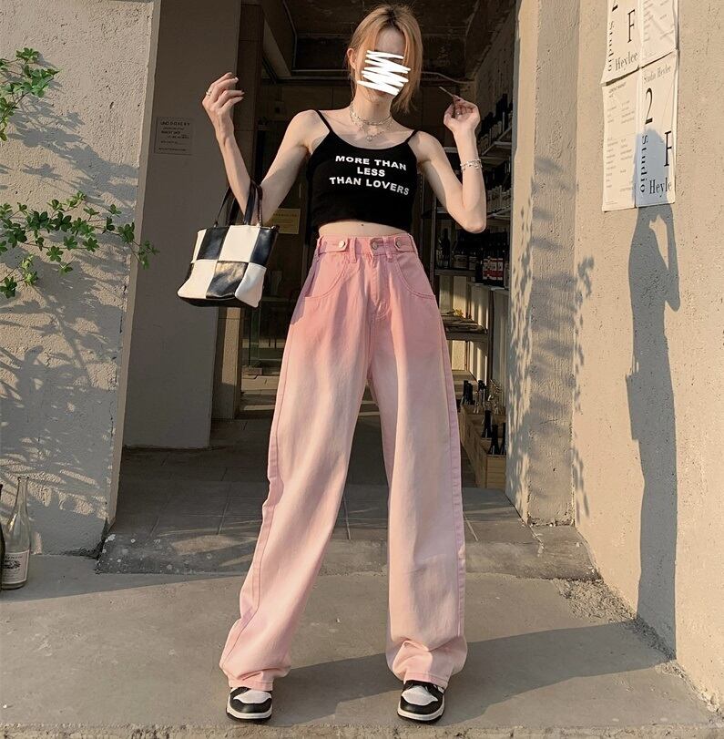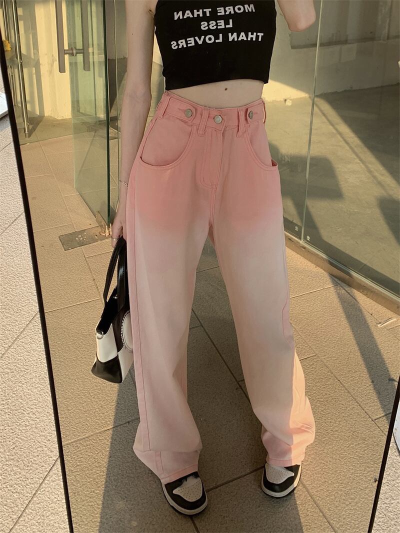 グラデーション ハイウエスト デニムパンツ ボトムス パンツ Gパン ズボン ワイドパンツ ロング ロング丈 ストレート ワイド ポケット デニム ブルーデニム カラーデニム かわいい 大人可愛い カジュアル 大人 おしゃれ お洒落 レトロ 大人女子 こなれ感 ボーイッシュ ルーズ 個性的 クール 柄 春 夏 秋 冬 10代 20代 レディース 通勤 学生 通学 デート お出かけ 女子会 休日 旅行 着回し 普段使い 韓国 脚長 定番 ゆったり ゆる サイズ S M 色展開 青 ブルー ピンク