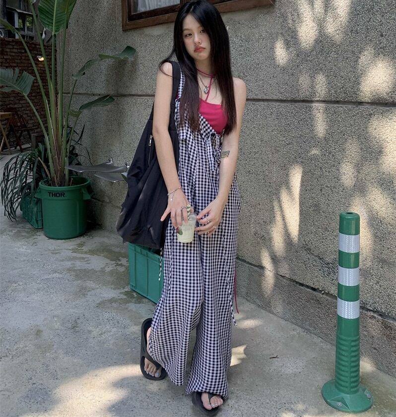 セットアップ キャミソール チェック柄 サロペット パンツ 2点セット トップス ボトムス ストレートパンツ ロング ロング丈 袖なし ノースリーブ ストレート ワイド ハイウエスト ツーピース かわいい 大人可愛い カジュアル 大人 おしゃれ お洒落 大人女子 こなれ感 無地 柄 格子柄 春 夏 秋 10代 20代 レディース 通勤 学生 通学 デート お出かけ 女子会 休日 旅行 着回し 普段使い 重ね着 韓国 韓国系 コーデ 脚長 ゆったり ゆる サイズ S M 色展開 ピンク チェック柄