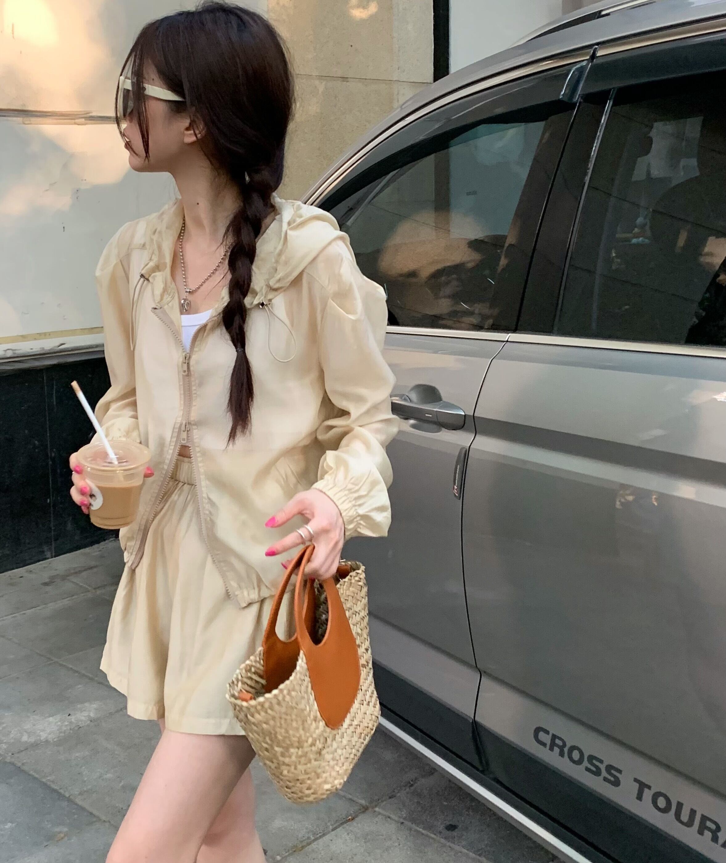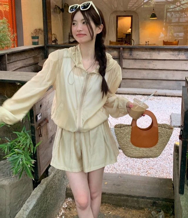 ジャージ セットアップ パーカー ジャケット ショートパンツ 上下セット 2点セット ボトムス パンツ アウター ズボン ショート丈 ミディアム丈 袖あり 長袖 フード付き ファスナー ハイウエスト 前開き ウエストゴム ツーピース かわいい 大人可愛い シンプル カジュアル 大人 おしゃれ お洒落 こなれ感 スポーティー ルーズ 無地 春 夏 秋 10代 20代 レディース 通勤 学生 通学 デート お出かけ 女子会 休日 旅行 着回し 普段使い 韓国 ゆったり ゆる フリーサイズ 色展開 クリーム