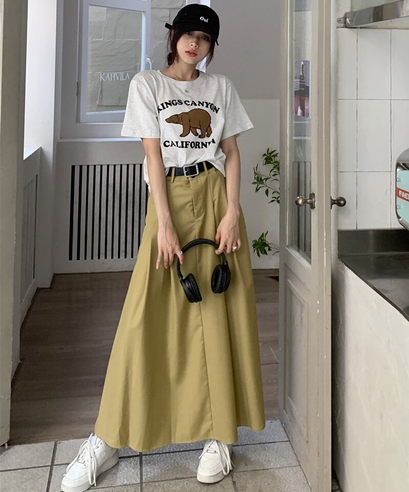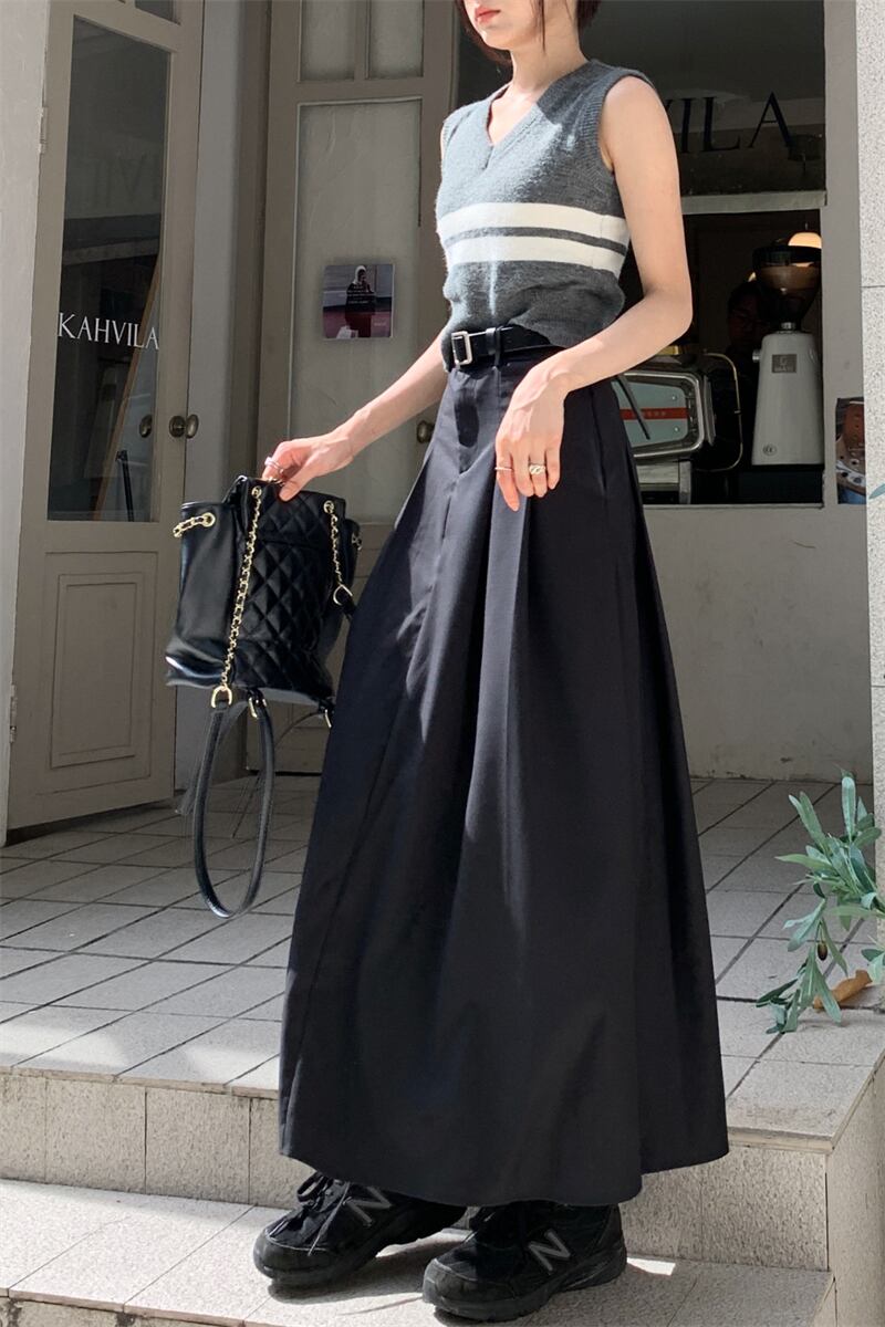ベルト付き ロング丈 タックスカート スカート ボトムス ロングスカート 膝下 ロング マキシ マキシ丈 Aライン ベルト ハイウエスト 大人可愛い シンプル カジュアル 大人 おしゃれ お洒落 大人女子 こなれ感 無地 春 夏 秋 10代 20代 レディース 通勤 学生 通学 デート お出かけ 女子会 休日 旅行 着回し 普段使い 韓国 韓国系 オルチャン サイズ S M L 色展開 黒 ブラック カーキ