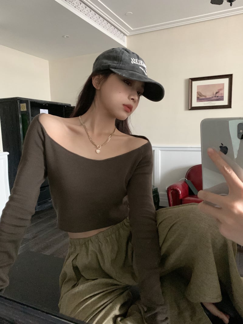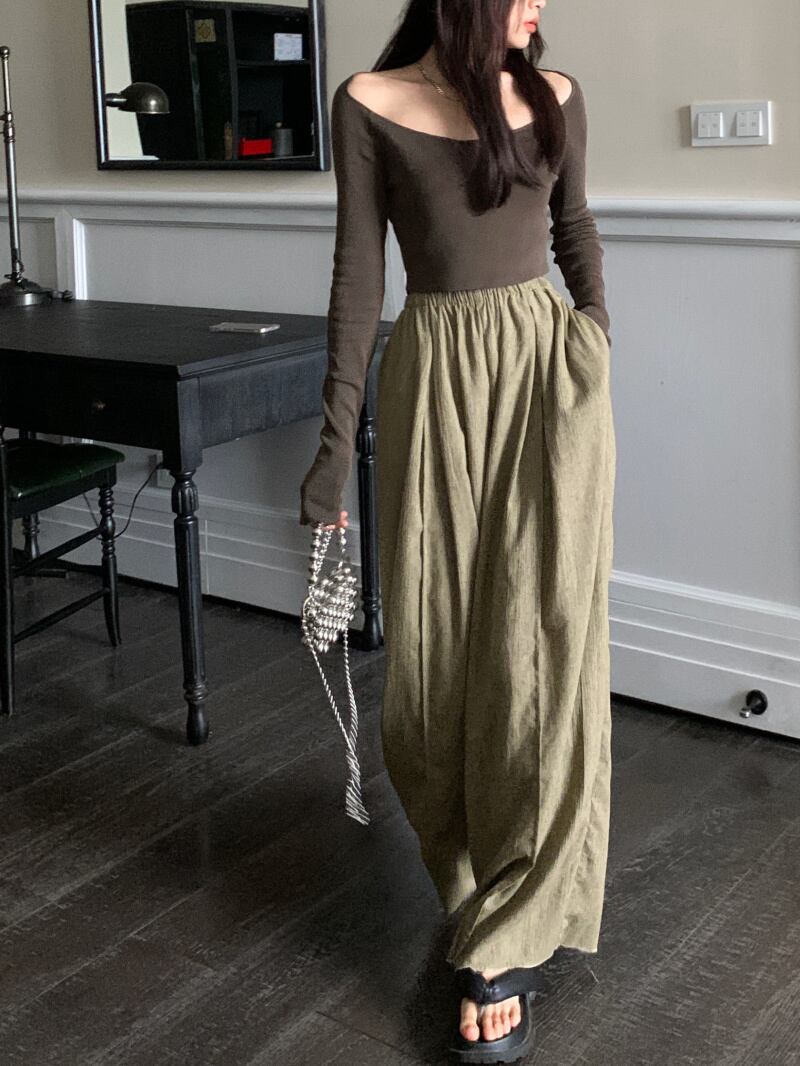 セットアップ ショート丈 ロンT パンツ 上下セット 2点セット トップス ボトムス 長袖 Tシャツ ズボン ワイドパンツ ロング オフショルダー ストレート ワイド ハイウエスト ウエストゴム ツーピース かわいい 大人可愛い シンプル カジュアル お洒落 こなれ感 ラフ ルーズ 無地 夏 10代 20代 レディース 通勤 学生 通学 デート お出かけ お泊まり 休日 旅行 着回し 普段使い 重ね着 サイズ S M フリーサイズ 色展開 黒 ブラック 灰色 グレー 緑 カーキグリーン 茶色 ブラウン