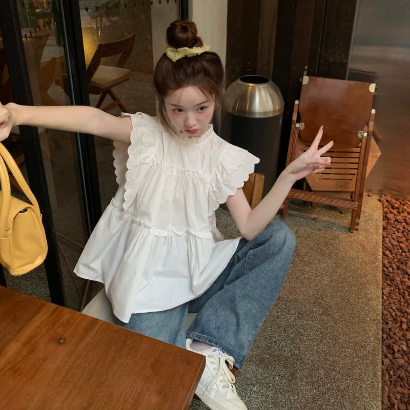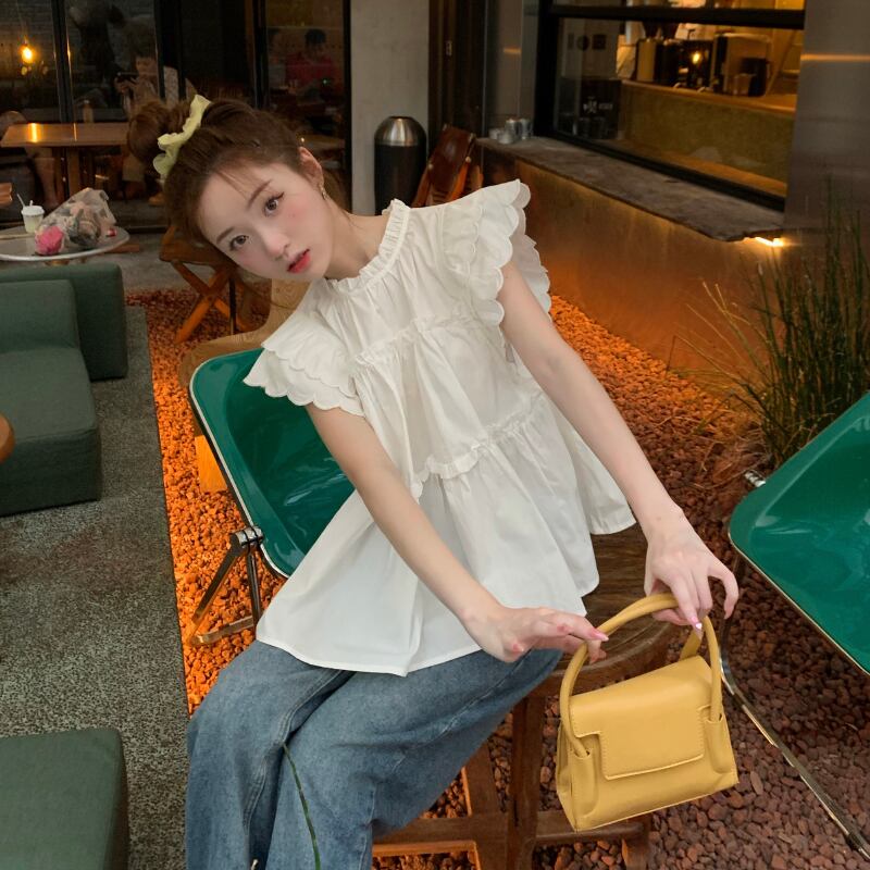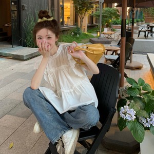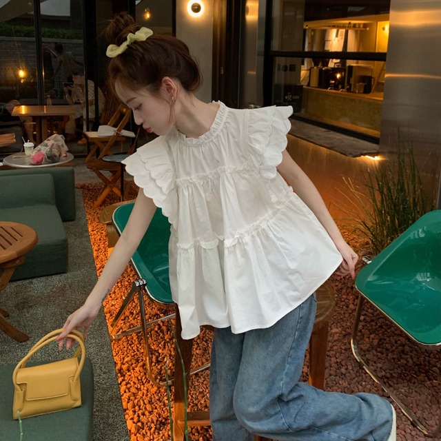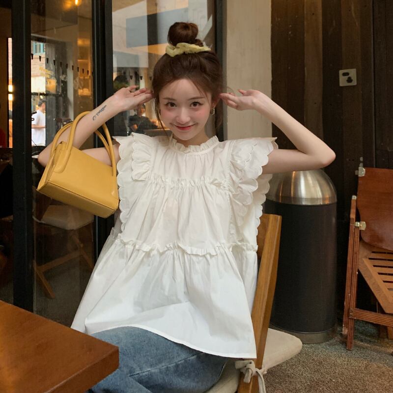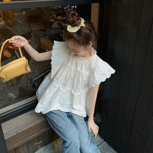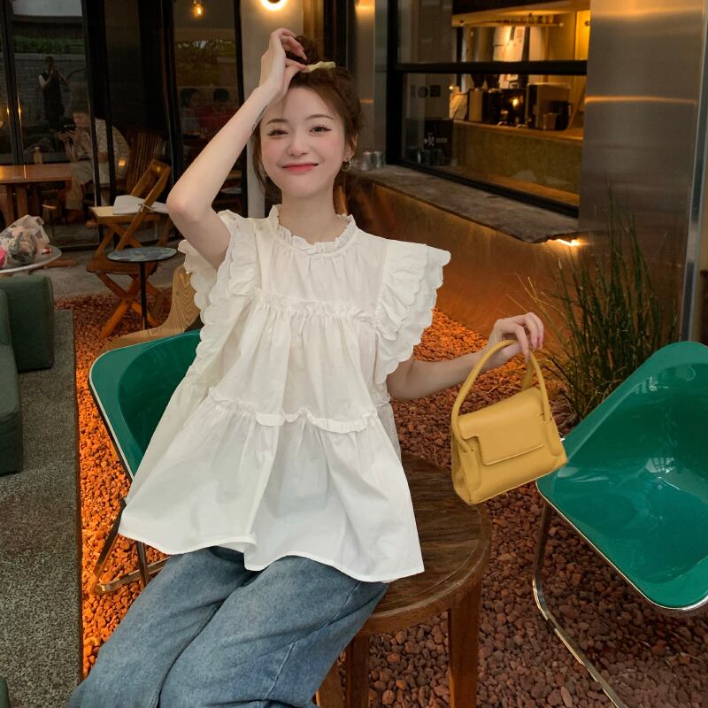 ティアード フリル シャツ ブラウス トップス プルオーバー 白トップス ミディアム丈 袖あり フレンチスリーブ 襟付き スタンドカラー フレア ペプラム Aライン 切り替えデザイン かわいい 大人可愛い シンプル カジュアル 大人 おしゃれ お洒落 大人女子 キュート ガーリー 主役級 無地 春 夏 10代 20代 レディース 通勤 学生 通学 デート お出かけ 女子会 休日 旅行 着回し 普段使い 重ね着 韓国 韓国系 オルチャン 楽ちん 体系カバー ゆったり フリーサイズ 色展開 白 ホワイト