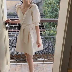 #かわいい #おしゃれ #Vネック #ウエストリボン #ワンピース