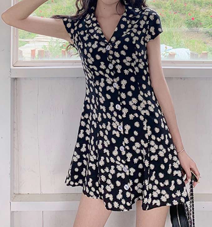 大きいサイズ デイジー柄 半袖 ミニ ワンピース フレアワンピース ミニ丈 膝上 袖あり Vネック 襟なし フレア Aライン かわいい 大人可愛い カジュアル 大人 おしゃれ お洒落 レトロ 大人女子 ガーリー 主役級 柄 花柄 フラワー 夏 10代 20代 レディース 通勤 学生 通学 デート お出かけ 女子会 休日 旅行 着回し 普段使い 重ね着 韓国 韓国系 オルチャン 楽ちん 体系カバー ゆったり サイズ L XL 2XL 3XL 色展開 小花柄
