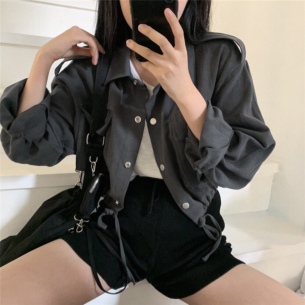 薄手 ドロスト ショート ジャケット アウター 上着 ショート丈 袖あり 長袖 ドロップショルダー 萌袖 襟付き ポケット 前開き 薄手 かわいい 大人可愛い シンプル カジュアル 大人 おしゃれ お洒落 かっこいい 大人女子 こなれ感 メンズライク ルーズ 無地 春 秋 冬 10代 20代 レディース 通勤 学生 通学 デート お出かけ 女子会 休日 旅行 着回し 普段使い 重ね着 韓国 韓国系 オルチャン ゆったり ゆる サイズ S M L XL 色展開 白 ホワイト 灰色 グレー
