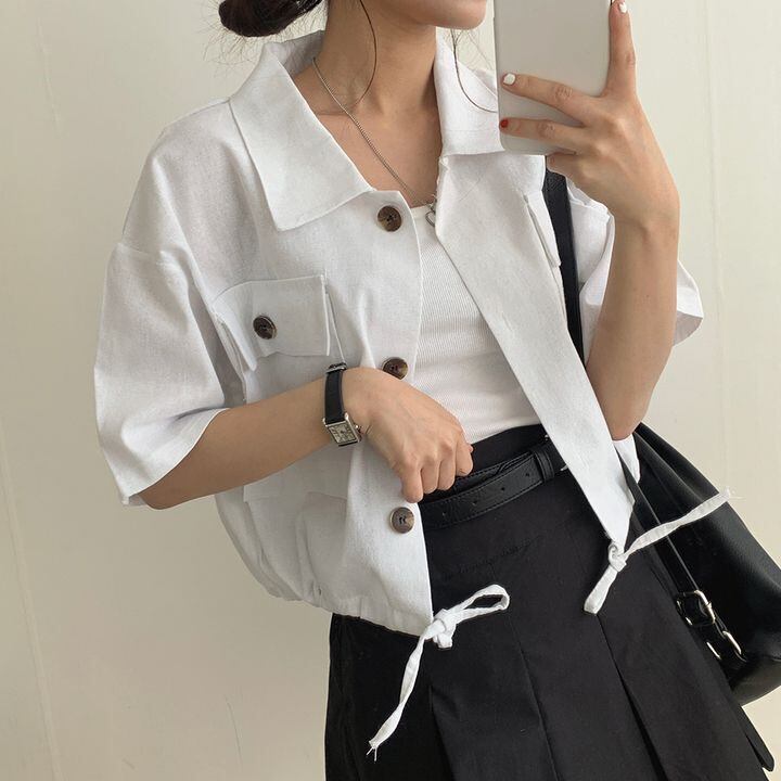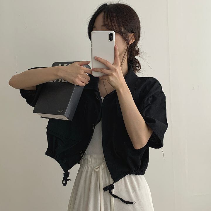 カラバリ 半袖 ショート丈 ジャケット アウター 上着 ショート 袖あり 襟付き ポケット 前開き ドローストリング ドロスト かわいい 大人可愛い シンプル カジュアル 大人 おしゃれ お洒落 大人女子 こなれ感 ルーズ 無地 春 夏 秋 10代 20代 レディース 通勤 学生 通学 デート お出かけ 女子会 休日 旅行 着回し 普段使い 重ね着 韓国 韓国系 オルチャン ゆったり ゆる フリーサイズ 色展開 白 ホワイト 黒 ブラック アプリコット