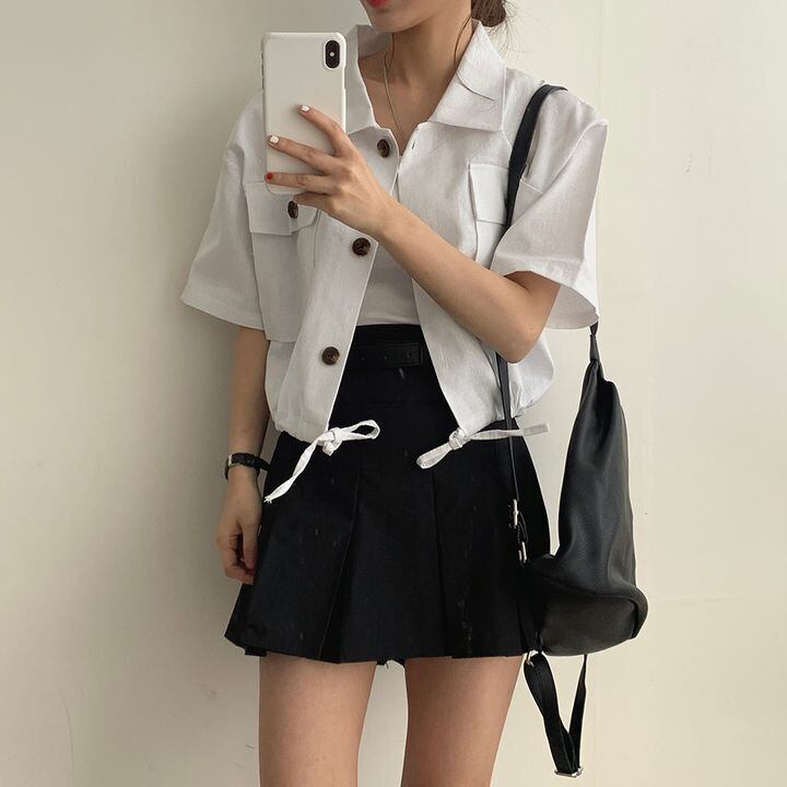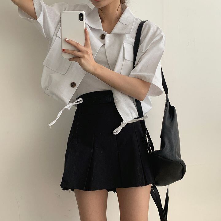 デイリー使いがしやすいシンプルなデザインで、ショート丈の旬顔シルエットをメイク。
