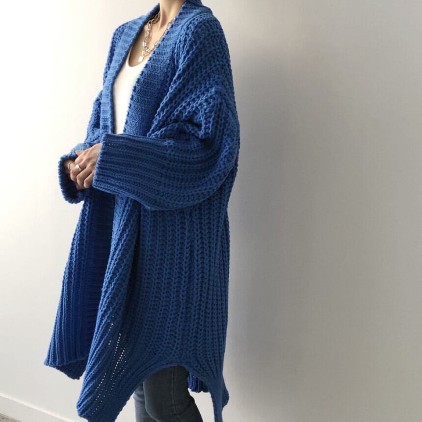 ざっくり編み ロング ニット カーディガン アウター 上着 ロング丈 袖あり 長袖 ボリューム袖 ドロップショルダー 襟なし アシンメトリー スリット サイドスリット 前開き クロシェ 編み込み 厚手 かわいい 大人可愛い シンプル カジュアル 大人 おしゃれ お洒落 大人女子 こなれ感 ルーズ 無地 春 秋 冬 10代 20代 30代 レディース 通勤 学生 通学 デート お出かけ 女子会 休日 旅行 着回し 普段使い 重ね着 韓国 暖かい ゆったり ゆる フリーサイズ 色展開 黒 ブラック 青 ブルー