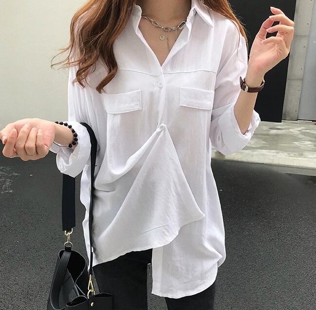 大きいサイズ 秋カラー ルーズ シャツ トップス 白シャツ 白トップス ミディアム丈 袖あり 長袖 襟付き ポケット 前開き かわいい 大人可愛い きれいめ シンプル カジュアル 大人 おしゃれ お洒落 大人女子 こなれ感 抜け感 無地 春 秋 10代 20代 30代 レディース 通勤 学生 通学 デート お出かけ 女子会 旅行 着回し 普段使い 重ね着 韓国 韓国系 オルチャン ゆったり ゆる サイズ M L XL 2XL 3XL 4XL 色展開 白 ホワイト 青 ブルー 黄色 イエロー