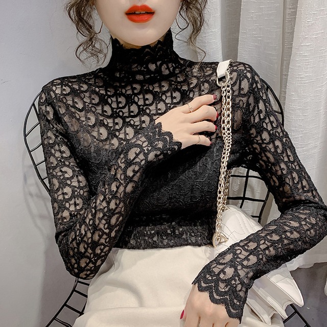 総レース シースルー 長袖 ブラウス トップス プルオーバー ミディアム丈 袖あり 襟付き ハーフハイネック スリム 細身 レース 透け感 かわいい 大人可愛い きれいめ カジュアル 大人 上品 おしゃれ お洒落 大人女子 セクシー エレガント 柄 春 秋 冬 10代 20代 レディース 通勤 学生 通学 デート お出かけ 女子会 休日 旅行 着回し 普段使い 重ね着 韓国 韓国系 オルチャン 大きいサイズ S M L XL 2XL 色展開 白 ホワイト 黒 ブラック アプリコット