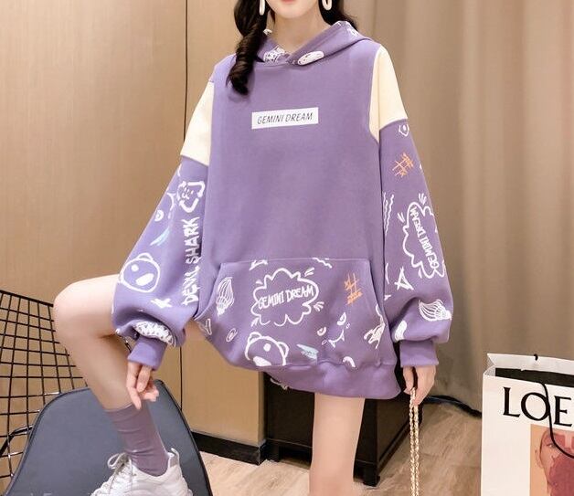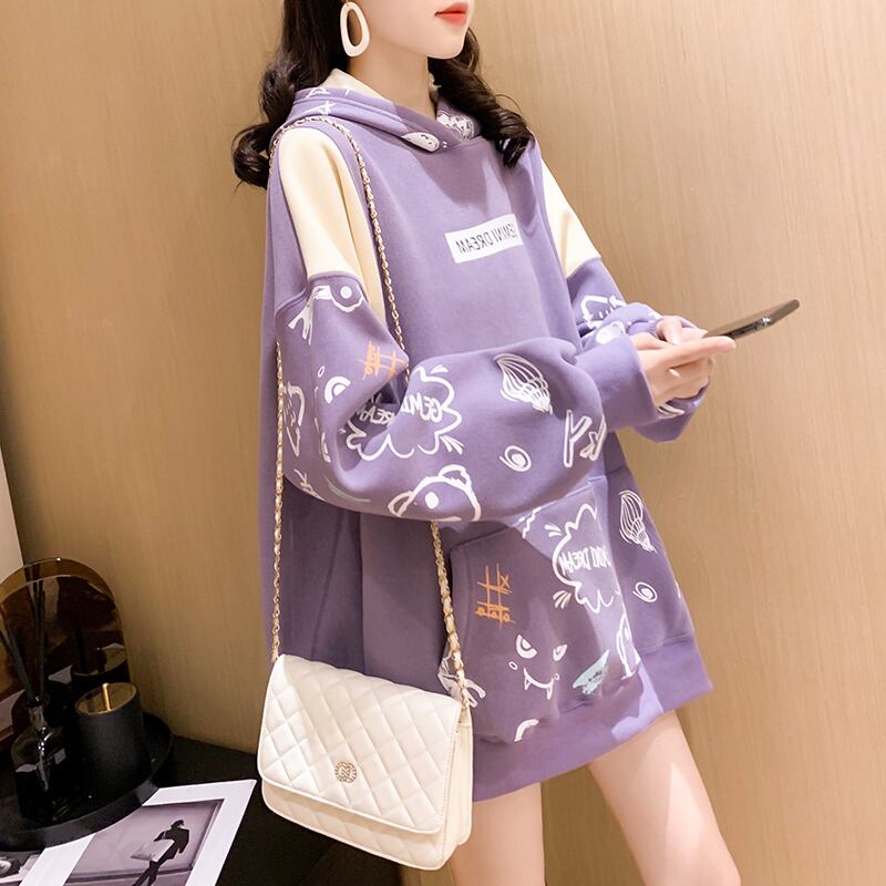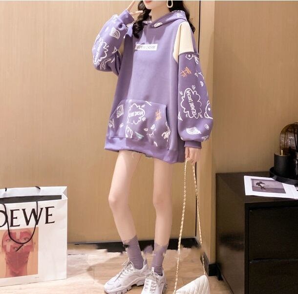 カラバリ プリント 柄 フード付き 長袖 パーカー トップス プルオーバー フーディー ミディアム丈 袖あり 長袖 ドロップショルダー ポケット 薄手 厚手 裏起毛 かわいい 大人可愛い カジュアル 大人 おしゃれ お洒落 大人女子 こなれ感 ルーズ 個性的 春 秋 冬 10代 20代 レディース 通勤 学生 通学 デート お出かけ 女子会 休日 旅行 着回し 普段使い 重ね着 韓国 韓国系 オルチャン 暖かい ゆったり ゆる 大きいサイズ M L XL 2XL 色展開 黒 ブラック 紫 パープル ピンク
