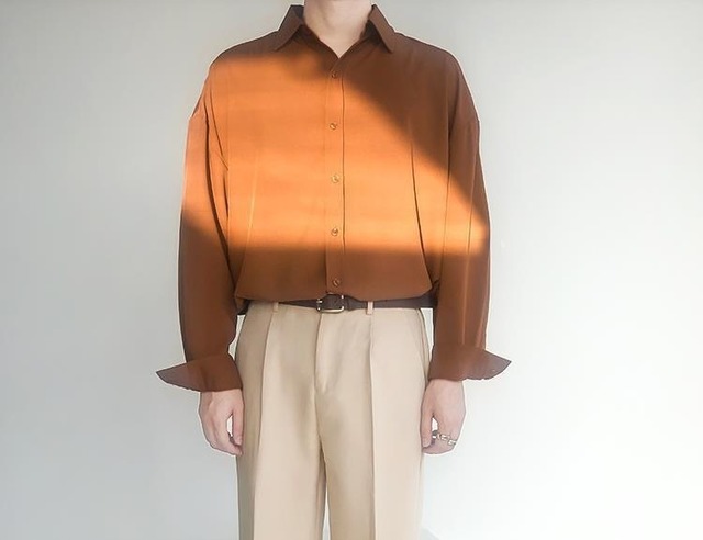 シンプルでシックにキマる、柔らかシフォンのオーバーシャツ。