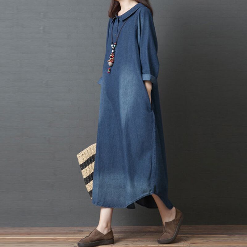 ウォッシュデニム 襟付き ロング ワンピース デニムワンピース 膝下 ロング丈 マキシ マキシ丈 袖あり 長袖 ポケット デニム ブルーデニム かわいい 大人可愛い シンプル カジュアル 大人 おしゃれ お洒落 レトロ 大人女子 ルーズ 無地 春 秋 30代 40代 50代 レディース ママ マタニティ 通勤 デート お出かけ 女子会 休日 旅行 着回し 普段使い 重ね着 韓国 韓国系 楽ちん 体系カバー ゆったり 大きいサイズ M L XL 2XL 色展開 黒 ブラック 青 ブルー