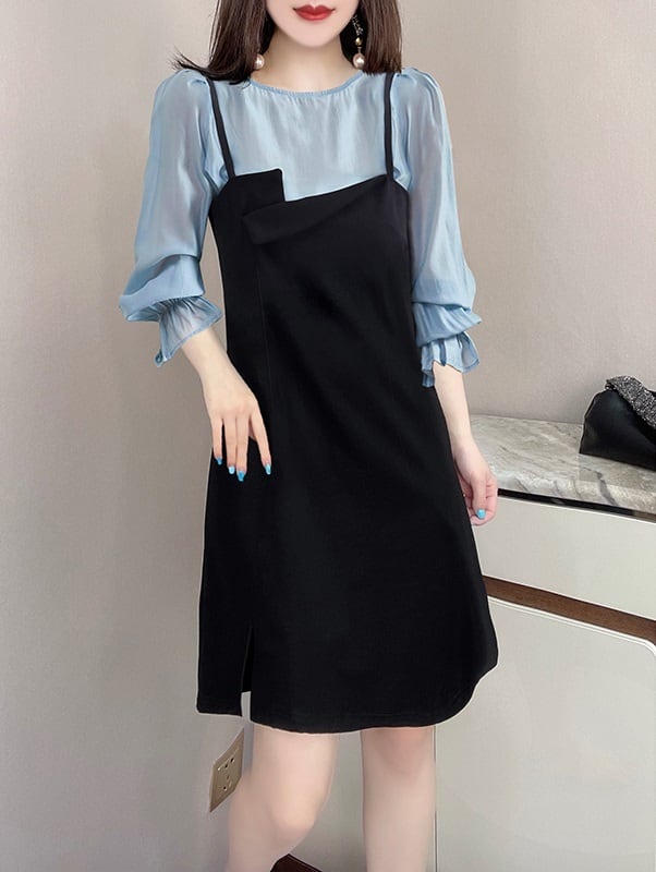 色展開 ブラック(キャミワンピ)+水色(ブラウス)
