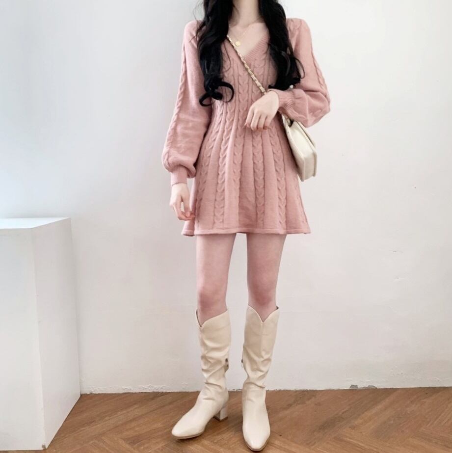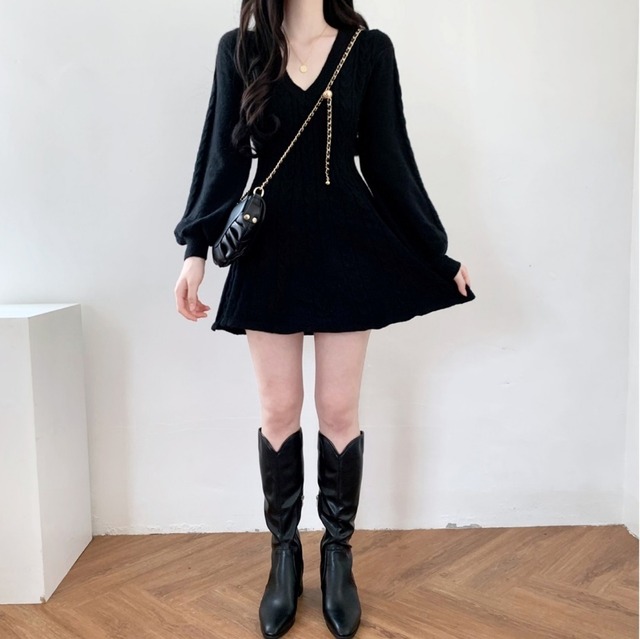 Vネック ケーブル編み ニット ミニ ワンピース フレアワンピース ミニ丈 膝上 袖あり 長袖 襟なし スリム 細身 Aライン ハイウエスト ケーブルニット 編み込み 伸縮性 かわいい 大人可愛い カジュアル 大人 おしゃれ お洒落 大人女子 ラブリー キュート ガーリー 主役級 柄 春 秋 冬 10代 20代 レディース 通勤 学生 通学 デート お出かけ 女子会 休日 旅行 着回し 普段使い 重ね着 韓国 韓国系 オルチャン 楽ちん 暖かい フリーサイズ 色展開 白 ホワイト 黒 ブラック ピンク