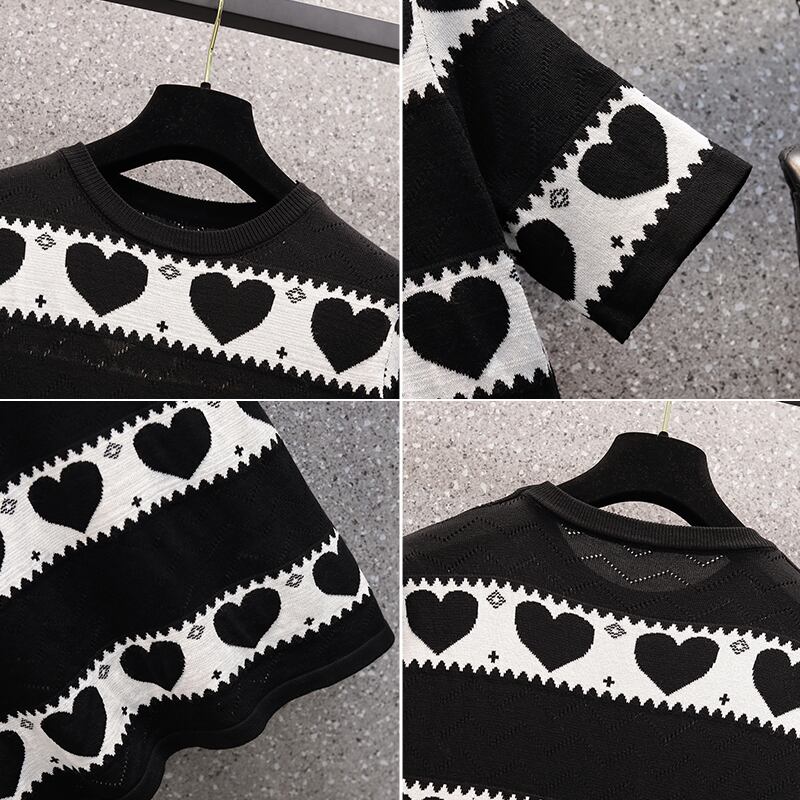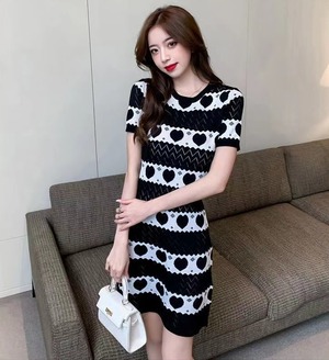 ハート柄 ラウンドネック 半袖 ミニ丈 ニット ワンピース ミニ 袖あり 襟なし スリム 細身 ハイウエスト 伸縮性 サマーニット かわいい 大人可愛い カジュアル 大人 おしゃれ お洒落 大人女子 ラブリー キュート ガーリー 個性的 主役級 存在感 柄 ハート 春 夏 10代 20代 レディース 通勤 学生 通学 デート お出かけ 女子会 休日 旅行 着回し 普段使い 重ね着 韓国 韓国系 オルチャン 楽ちん 大きいサイズ M L XL 2XL 3XL 4XL 色展開 黒 ブラック