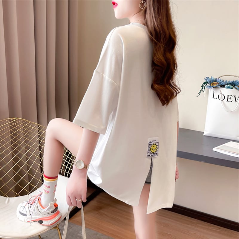 英字 ロゴ 半袖 ルーズ Tシャツ トップス ビッグT ミディアム丈 袖あり 5分袖 五分袖 ドロップショルダー ラウンドネック 襟なし スリット バックスリット かわいい 大人可愛い シンプル カジュアル 大人 おしゃれ お洒落 大人女子 こなれ感 柄 プリント 春 夏 10代 20代 レディース 通勤 学生 通学 デート お出かけ 女子会 休日 旅行 着回し 普段使い 重ね着 韓国 韓国系 オルチャン ゆったり ゆる 大きいサイズ M L XL 2XL 色展開 白 ホワイト 黄色 イエロー ピンク