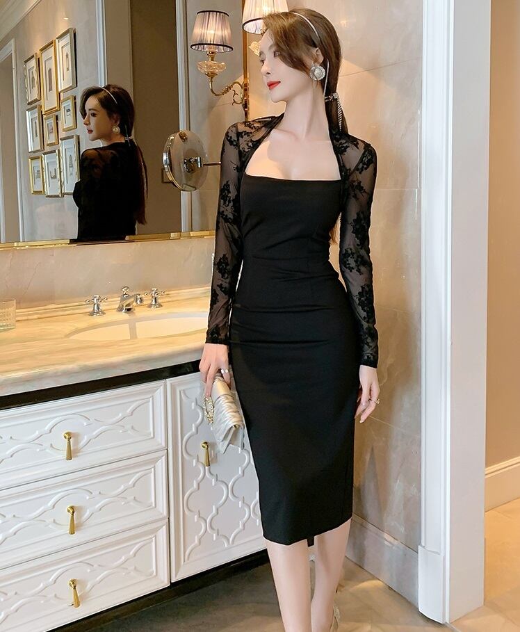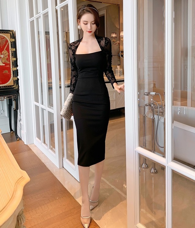 レース スクエアネック ミモレ丈 ドレス ワンピース 衣装 パーティードレス ワンピドレス 膝下 ミモレ 袖あり 長袖 襟なし スリム 細身 刺繍 透け感 シースルー 谷間 谷間魅せ かわいい 大人可愛い きれいめ 大人 上品 おしゃれ お洒落 大人女子 セクシー エレガント 柄 花柄 小花柄 フラワー 20代 30代 40代 レディース デート お出かけ 女子会 休日 イベント 旅行 高見え 春 秋 二次会 2次会 お呼ばれ パーティ 舞台 サイズ S M L 色展開 黒 ブラック