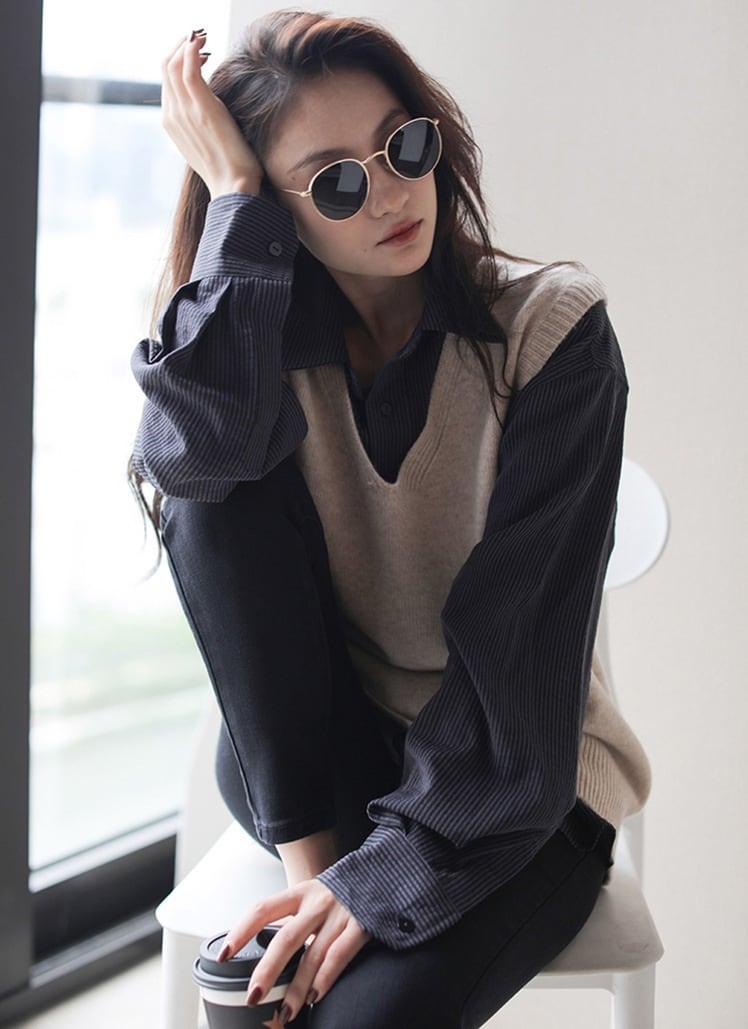 セットアップ コーデュロイ シャツ ニット ベスト 2点セット トップス シャツ ミディアム丈 袖なし 袖あり ノースリーブ 長袖 Vネック 襟付き ツーピース かわいい 大人可愛い きれいめ シンプル カジュアル 大人 おしゃれ お洒落 レトロ 大人女子 こなれ感 ルーズ 無地 春 秋 10代 20代 30代 レディース 通勤 学生 通学 デート お出かけ 女子会 休日 旅行 着回し 普段使い 重ね着 韓国 暖かい ゆったり ゆる サイズ S M L XL 色展開 青 ブルー 茶色 ブラウン ベージュ